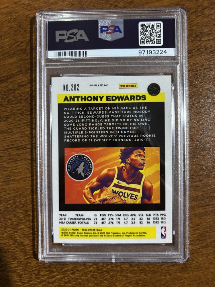 ✨2020 Panini Flux Anthony Edwards Rookie Pulsar Prizm RC #202 PSA 10 Gem Mint