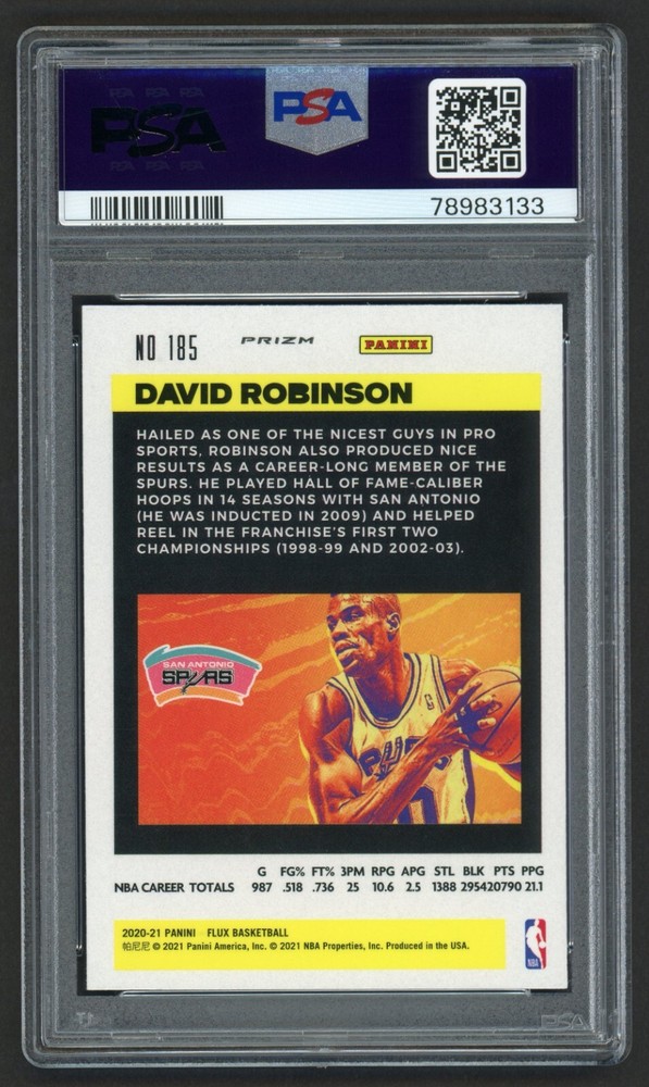 2020 Panini Flux David Robinson #185 Fanatics Cracked Ice Prizm PSA 10 Gem Mint