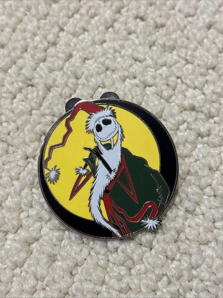 The 2020 Parks Reveal Conceal Disguises Jack Santa NBC Disney Pin LR features a design inspired by the "Nightmare Before Christmas" character Jack Skellington dressed as Santa Claus. This limited edition pin was released by Disney in 2020 as part of their Christmas-themed collection. As a collectible item, it is sought after by fans of Disney and "Nightmare Before Christmas" for its unique and festive design, making it a special addition to any Disney pin collection.