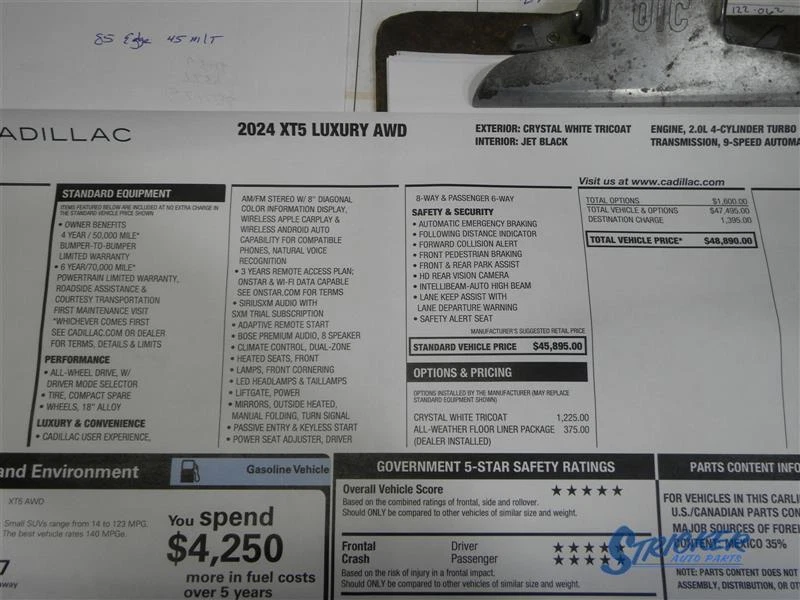 eBay WHI Template Cadillac XT5 2020-2024 Left Tail Light Assembly Red Lens LED 84245001 G24069 180 Day Replacement Warranty!! SELLER & PAYMENT INFORMATION Seller name stricker_bros See our other listings CUSTOMER SUPPORT If you have questions about the product or your order please contact us via eBay Messages for assistance. Thank you. Business Hours 8 am to 4:30 p.m. EST, MON to FRI SHIPPING & HANDLING Shipping Service Please refer to shipping section Shipping Cost Please refer to shipping section Order Processing Time 1 business day PART DETAILS Brand UNITED RECYCLERS GROUP Part Number 737273 Item Description Tail Light Assembly Quantity Needed 1 Position Left ITEM SPECIFICS Description Why Buy Recycled? Save money and time in the repair shop. Original parts mean a perfect fit. Every part is cleaned, tested and inspected by experts. All parts are covered by warranty. Parts go back into cars rather than landfill. Type Tail Light Assembly See Item Specifics section for additional specifications about this part. Additional Information We distribute Tail Light Assembly's. This is a recycled product. URG is a group of certified recyclers of quality replacement parts. Unless specified as Universal this is a direct fit Tail Light Assembly. A reminder that this listing is for a single Tail Light Assembly which may be less than you need for your application. Check the fitment information for the qty your vehicle requires. red lens L.. Last Updated: 03/13/2025 05:44:21 AM Vehicle Fitment Summary To confirm that this part fits your vehicle, enter your vehicle's Year, Make, Model, Trim and Engine in the Compatibility Table . Also review the notes section in the compatibility chart for additional specifications about this part. This part generally fits Cadillac vehicles and includes models such as XT5 with the trims of Luxury Sport Utility 4-Door,Premium L uxury Sport Utility 4-Door. The engine types may include 2.0L 1998CC 122Cu. In. l4 GAS DOHC Turbocharged,3.6L 222Cu. In. V6 GAS DO HC Naturally Aspirated. This part fits vehicles made in the following years 2020,2021,2022. To confirm that this part fits your vehicle, enter your vehicle's Year, Make, Model, Trim and Engine in the Compatibility Table . Also review the notes section in the compatibility chart for additional specifications about this part. Interchange Part Numbers This item may interchange to the following part numbers from other brands. This is provided for reference only and does not guarantee that the part your are buying is identical to the part numbers from the brands listed below. To confirm that this part fits your vehicle, enter your vehicle's Year, Make, Model, Trim and Engine in the Compatibility Table . Brand UNITED RECYCLERS GROUP Part Numbers 84245001 ABOUT THE SELLER Stricker Auto Parts is a family owned and operated automotive recycling / auto salvage business with over 50 years of experience in our industry. Stricker Auto Parts is located in the Greater Cincinnati Area in Batavia, Ohio. We locally service Body Shops, Mechanical Shops, Dealerships, Insurance Companies, and Do-It Yourselfers in Cincinnati, Northern Kentucky, Dayton, Columbus, and Indianapolis. Stricker Auto Parts specializes in OEM and Recycled Used Auto Parts from late model cars, trucks, and SUV's. We operate out of a 68 acre state of the art facility and are a truly "GREEN" Economical Company. All Vehicles are brought in and drained of all fluids including gas, fuel, oil, coolant, brake fluids, power steering fluid, freon and more. These fluids are recycled to protect the environment. The vehicles are then dismantled and parts are removed. Most of which are stored inside our over 185,000 sq. ft. of warehouse space. This assures that our parts retain their high quality, and are quickly available for delivery, and worldwide shipping. Stricker Auto Parts takes pride in the quality of our parts as well as the accuracy in our inventory and grading systems. WARRANTY Warranty Duration 6 Month Warranty Type Replacement Warranty Portions of the part information on this page have been provided by WHI Solutions, Inc. All rights reserved.