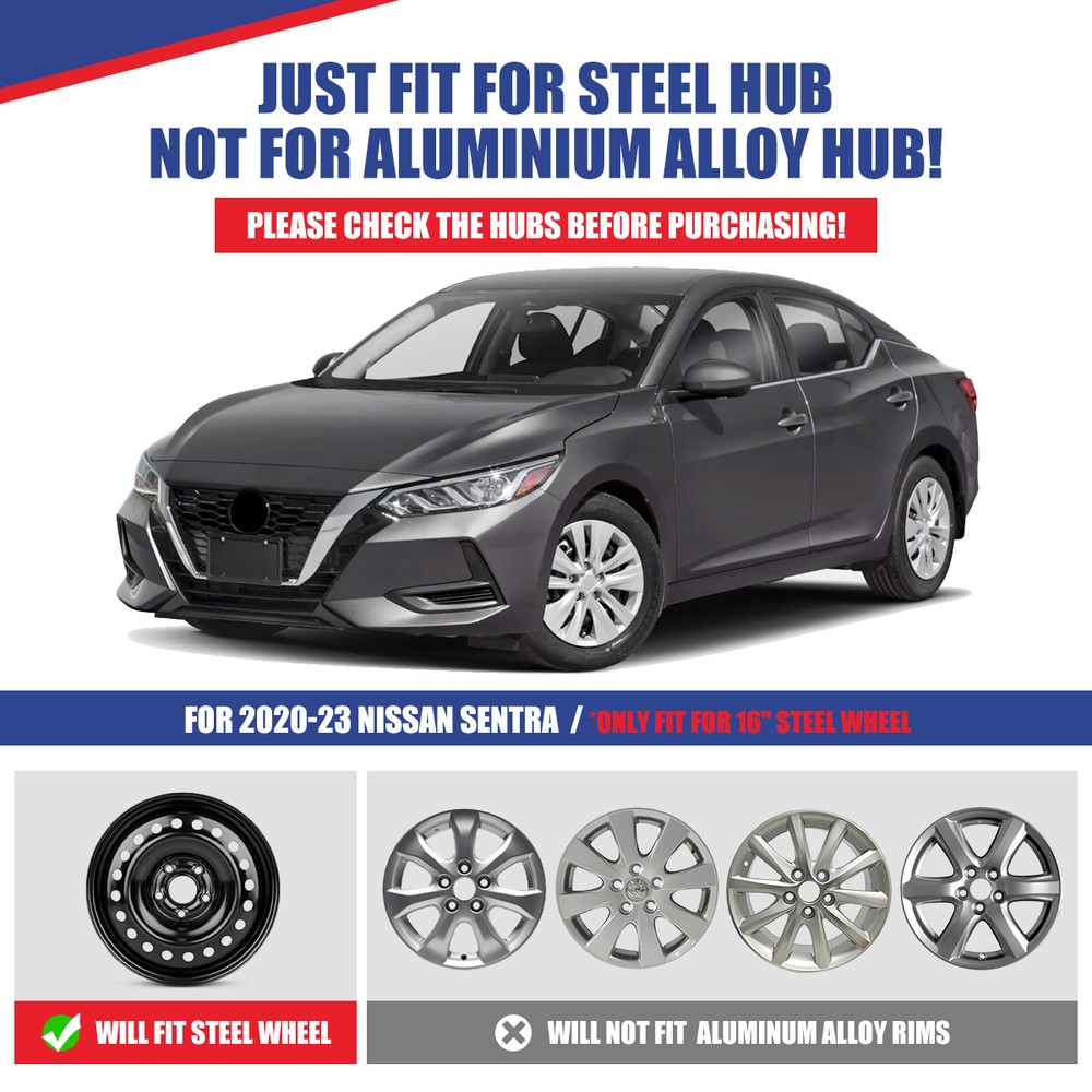 Head Lights Tail Lights Fog Lights Turn Signal Bumper Fender Flare Inner Fender Hubcaps Refrigerator Other Items for sale Head Lights Tail Lights Fog Lights Turn Signal Bumper Fender Flare Inner Fender Liners Portable Refrigerator 16" For 2020-2025 Nissan Sentra Hubcaps Wheel Covers Steel Rim Wheel Set Of 4pcs Fitment: For 2020-2025 Nissan Sentra 16'' Hubcaps Wheel Rim Cover Description: This set of 4 wheel covers is perfectly designed to fit your 16 inch Tire Size for for 2020-2025 Nissan Sentra ...and easily installs over your existing factory steel wheels in minutes! These wheel covers are constructed from durable, automotive grade plastic and feature an attractive finish for a custom look. Before Purchase: Please make sure to check your tire/wheel size before purchase! To confirm wheel size, please refer to the last two digits after the "R" of the tire. Designed for steel wheels, not for alloy wheels.Not suitable for wheels with middle protrusions higher than the rim. Not suitable for iron rims with long lug nuts. Easy Installation: Align the grooves of the adjustable steel retaining ring with the grooves of the hubcap and align the hubcap with the tire valve before snapping it onto the wheel. Stylish Appearance: The rim covers are very stylish and modernized with a finish, easily transforming the appearance of your wheels and enhancing the overall aesthetics of your car. Protect Your Wheels: universal hubcap can protect the tire screws and make it waterproof and rustproof. The hubcaps are easy to clean and maintain, can be quickly wiped with a damp cloth to remove any dirt. Quality Service: The wheel cover kit is compatible with most steel wheels. NOTE: Our wheel hubcaps are not suitable for wheels fitted with dynamic balancing blocks. If you have any other questions, please contact us. Specifications: - 10 Spoke Style - Front and Rear - Size:16 Inch - Material:High Quality Hard and Durable ABS Plastic - Fitment is for factory for 2020-2025 Nissan Altima 16' steel wheels only Package: 1 set of Wheel Covers(4 x Wheel Covers) Powered by Solid Commerce The All-in-One Listing, Inventory & Order Management Solution for Online Merchants Powered by Solid Commerce The All-in-One Listing, Inventory & Order Management Solution for Online Merchants Powered by Solid Commerce The All-in-One Listing, Inventory & Order Management Solution for Online Merchants Powered by Solid Commerce The All-in-One Listing, Inventory & Order Management Solution for Online Merchants Payment Shipping Return About us Contact us Payment Appreciated for the prompt payment, Contact us if bid by mistake, system open unpaid item automatically. Payment must be complete within 3 days from the date you purchase or after the end of auction. Items unpaid within 3 days of the auction end will be forfeited. We reserve the right of cancel the order and re-selling the items. Shipping All shipment will ship by UPS or USPS . All items will be ship within 1 working days , and we will ship out all orders as soon as possible after payment verified, please allow up to 1-4 business days for delivery. CANADA & International customers please note: your government might charge a duty tax (brokerage fees). We do not responsible for any custom duty or import tax. Why Choose the US Stock? 1. Us Local Shipping, No Extra Customs Cost to the US. 2. Fast Delivery: 1-4 Working days Delivery. 3. Best After-Sales Service!!! Return The buyer is responsible for all return shipping including a result of customer error or defective item. 1) If you received an incorrect, damaged, defective, or item not as described, contact us for full refund or replacement on our cost. 2) If you want to return the item, please contact us within 60 days after package received. Return products must also be in its original condition: including box, packaging and all other accessories. About us We are the best auto parts, we have been pursuing excellence, continuous exploration as the slogan, let customer satisfaction is our purpose! We adhere to the United States local delivery, one year warranty! Welcome! Contact us How Should You Contact us? Please Read The Item Description And See if The item Fits Your Vehicle Exactly. If You Found Any questions, Feel Free to email us by "Ask a question" Our Office Hours Are Monday - Friday 8:00am - 5:00pm PST / 11:00am - 8:000pm ET, We Do Not Answer Any E-Mails On Weekend, And We Will Reply All E-Mails In The Order It Was Receive. All E-Mail Take Us Around 24 Hours To Respond To Any E-Mail. We Are Close During The Weekends And We Do Not Answer Any E-Mails During That Time.
