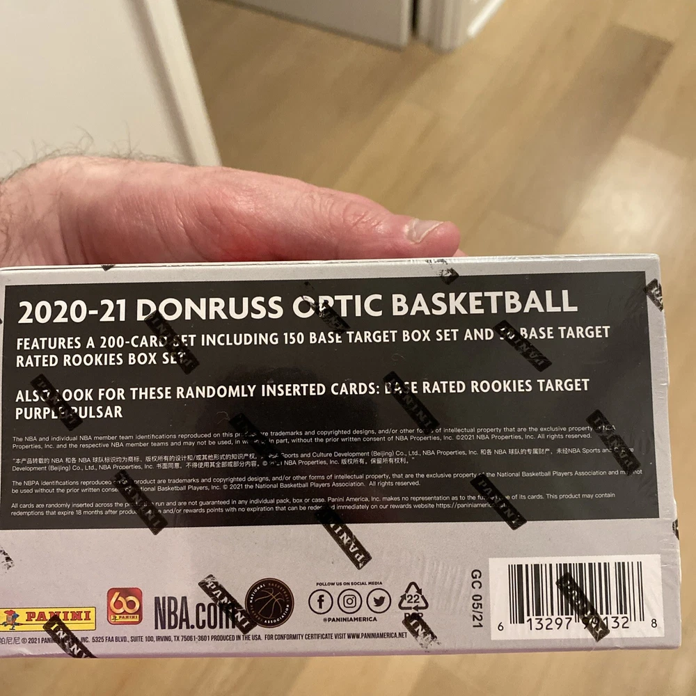 UPC: Does not apply Configuration: Box Manufacturer: Panini Number of Cards: 200 Year Manufactured: 2021 Season: 2020-21 Sport: Basketball League: National Basketball Association (NBA) Number of Boxes: 1 gtin13: Does not apply Type: Sports Trading Card Features: Exclusive Set: 2020-2021 Donruss Optic Card Size: Standard