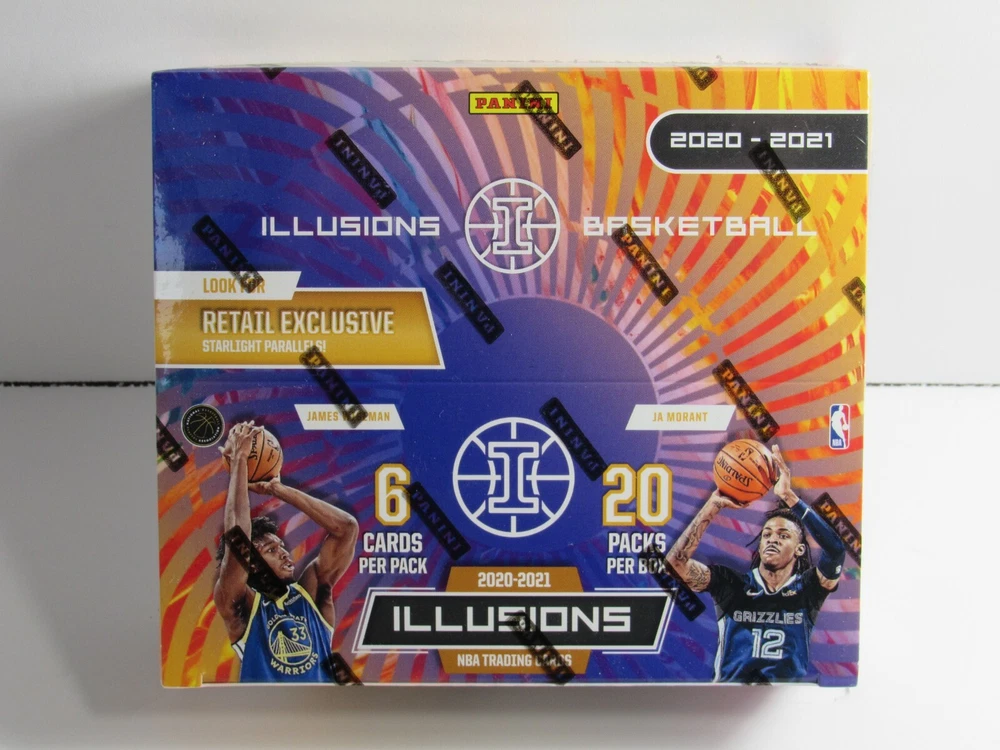 🏀 2020-21 Panini Illusions NBA Basketball Factory Sealed Retail Box 🏀 Listing Details Thank you for checking out my listing. This listing is for 1 (one) 2020-21 Panini Illusions NBA Basketball Retail Box . -Box is brand new/factory sealed. -20 packs per box/6 cards per pack. -All inventory is in hand and ready to ship. -Will take great care and properly pack this item and ship via USPS Ground Advantage. -Feel free to reach out if you have any questions or concerns. Happy Ripping and Good Luck! All sales are final, no returns are accepted.