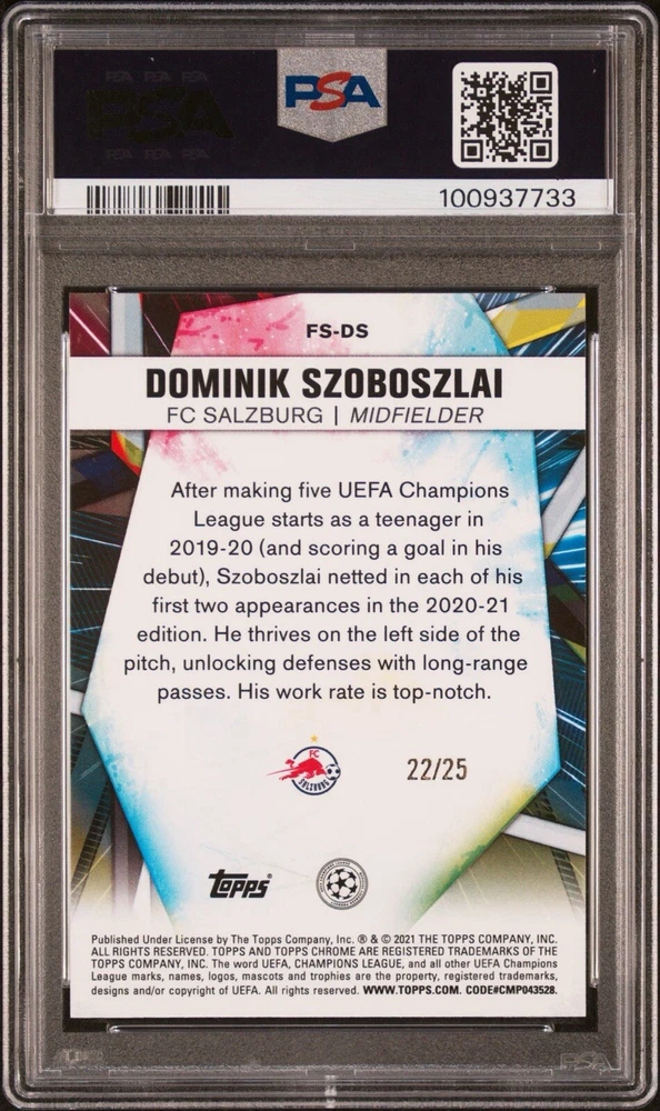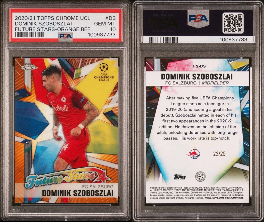 2020-21 Topps Chrome UCL Dominik Szoboszlai Orange Future Stars /25 PSA 10