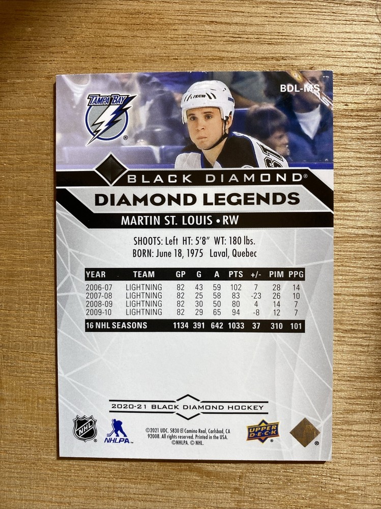 2020-21 Upper Deck Black Diamond Legends /349 Martin St Louis #BDL-MS HOF. Condition is Ungraded. Shipped with eBay Standard Envelope for Eligible Items up to $20.