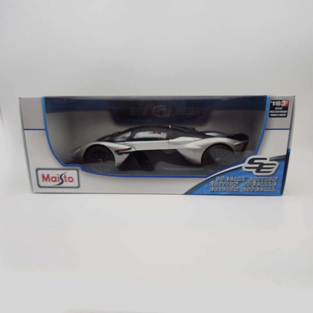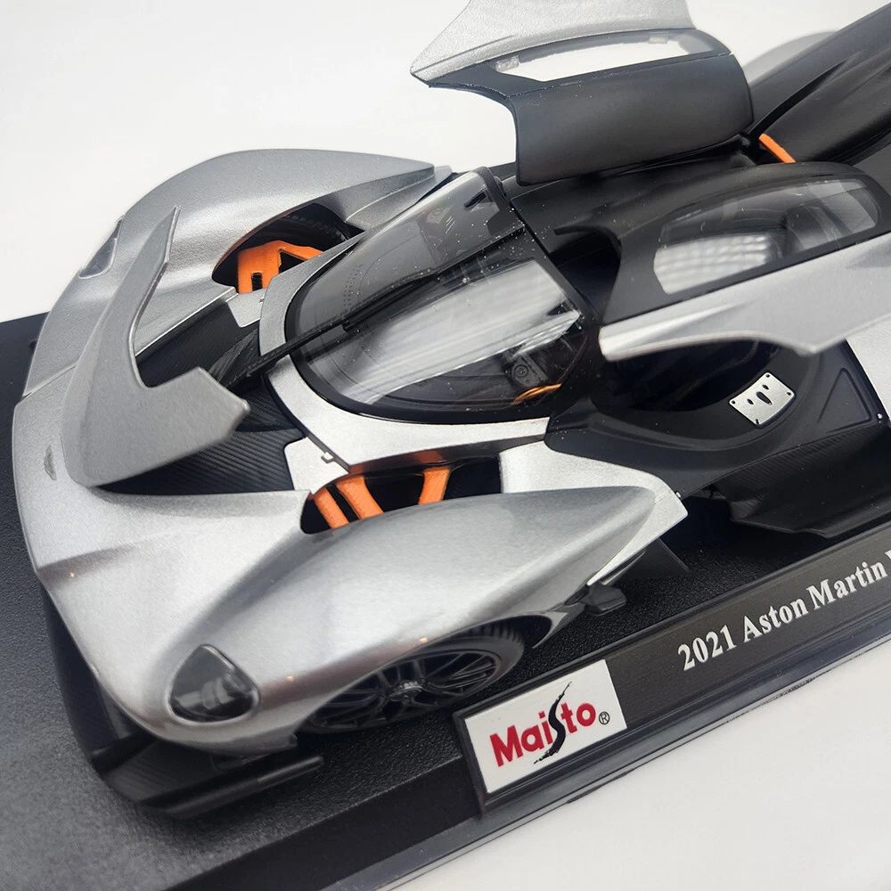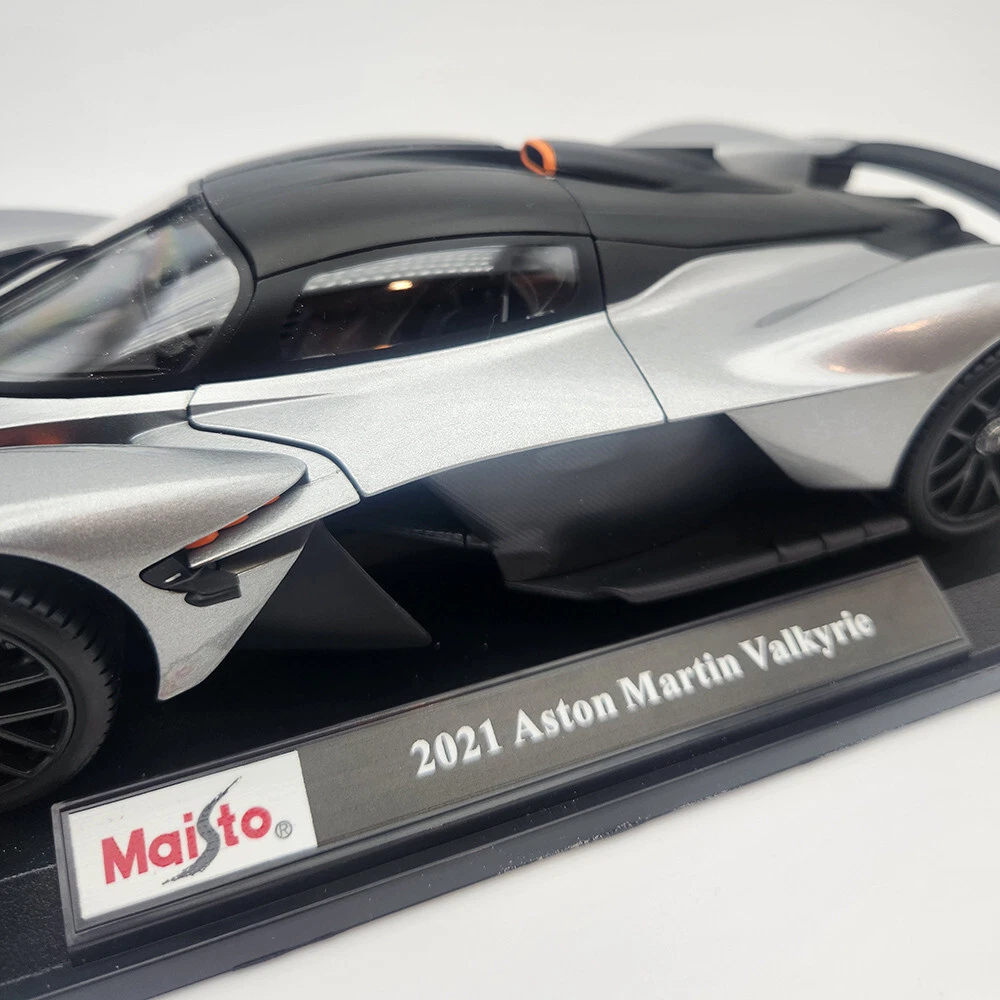 Aston Martin Valkyrie - Silver Gray - By Maisto - 1:18 Diecast Model With Opening Doors - Hood - Trunk. It Measures 10 Inches Or 25 CM In Length And 4 Inches Or 10 CM In Width. In Stock And Ready To Ship.