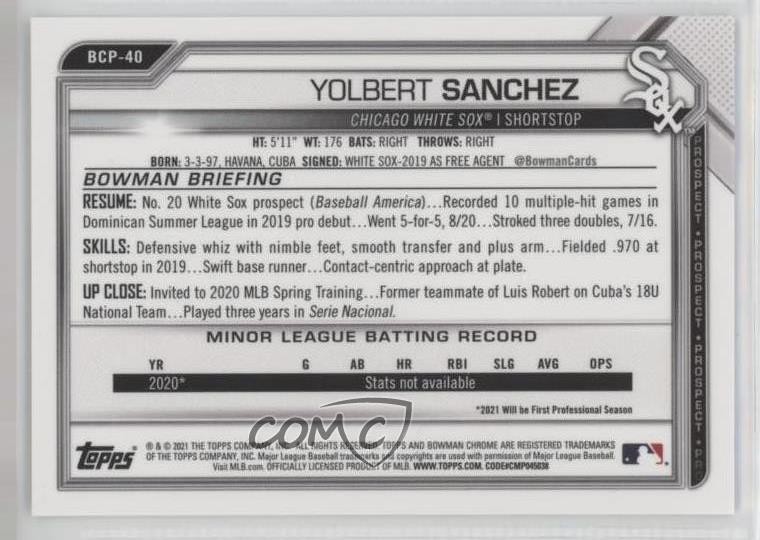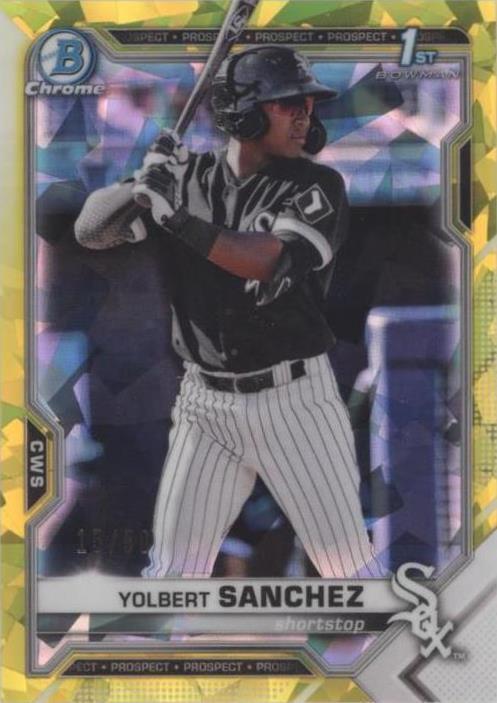 This card is a must-have for collectors! The vibrant yellow refractor pops beautifully, and with only 50 made, it’s a rare gem. Yolbert Sanchez’s rookie card in Bowman Sapphire Chrome looks stunning—sharp details, premium finish, and great investment potential. Highly recommended for any serious baseball card fan!