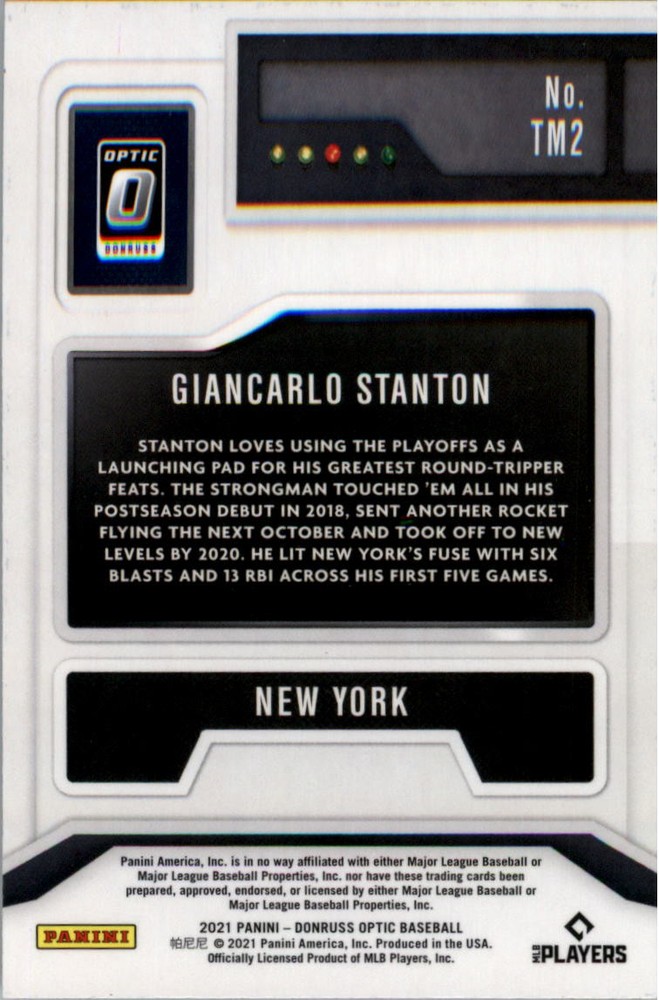 2021 Donruss Optic T-Minus 3 2 1 #2 Giancarlo Stanton Front Back Sport: Baseball Set: 2021 Donruss Optic T-Minus 3 2 1 Year: 2021 Item#: 2 Player: Giancarlo Stanton Team: New York Yankees Brand: Donruss Optic Manufacturer: Panini Group Grading Company: Raw Grade SetType: Insert Item Condition: Near Mint/Mint 2014 Beckett Collectibles, LLC. All Rights Reserved Powered by: Thank you for choosing Burbank Sportscards, the sports cards superstore. We offer a large selection of singles across all sports. Visit our ebay store to view all our items available. Our Shipping Policy We offer Free Standard Shipping to all Domestic customers. Options for Expedited shipping are also available at checkout. For our international customers, shipping is $9.99 for the first item, and $0.25 for each additional item. Note to all customers: To qualify for combines shipping, we ask our customers to add items into the shopping cart. Please note, we do not combine orders that are placed separately. Our Service: Generally, our turnaround is super quick as we process and send out orders same day payment is received. Stock Availability: We do our best to ensure all items are in stock; however, in case of the rare stock out, the customer will have the option for a replacement card, or we will process a refund so the order is not held up. Our Images: Many of our images are stock photos from Beckett archives. They are a representation of the actual card you would receive. If you have any questions regarding the item you're interested in, please feel free to ask (serial numbers and relic pieces may vary) Moreover, in a case of a wrong or defective photo, please notify us, so we can adjust it. Other FAQ's: -When buying multiple cards, do you top load each item? No; however, we do try to insure all items are shipped securely. If you wish to have all of your cards top loaded it is a paid service and can be arranged. Please email for more details. For other questions, please feel free to ask. Thank you.