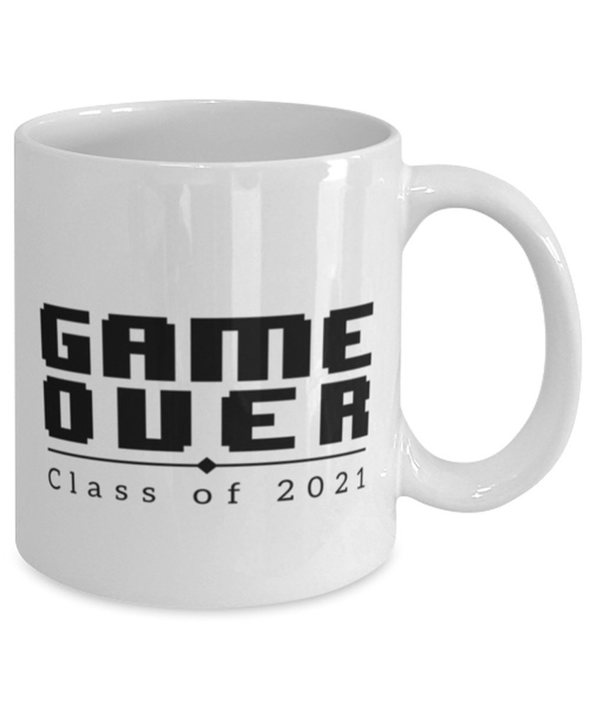 Class Of 2021 Graduation Coffee Mug Game Over Graduation Grad Mug Graduate Gift Product Details.. This high quality 11oz. ceramic white mug has a premium hard coat that provides crisp and vibrant color reproduction sure to last for years. Perfect for all hot & cold beverages. The highest quality printing possible is used. It will never fade no matter how many times you wash it. Material: 100% Ceramic. Print both sides. Dishwasher and Microwave Safe. High Gloss + Premium White Finish. Printed in the U.S.A. Personalized & Custom. We support personalized and custom mug to add custom, when placing an order, you can add notes to the "order note" in shipping address section. Also you can contact us directly via message. Shipping Info. Ready to ship in 1 to 2 business days, All products are made-to-order and proudly printed in the United States. Shipped by USPS and DHL, You will receive your order in 5-7 days. Replace & Refund. All products are defective during shipping broken, chipped will be replaced free of charge. You are not satisfied with the product, we will refund 100% money to you. If any other issues arise, please do not hesitate to message, we would be more than happy to assist you.