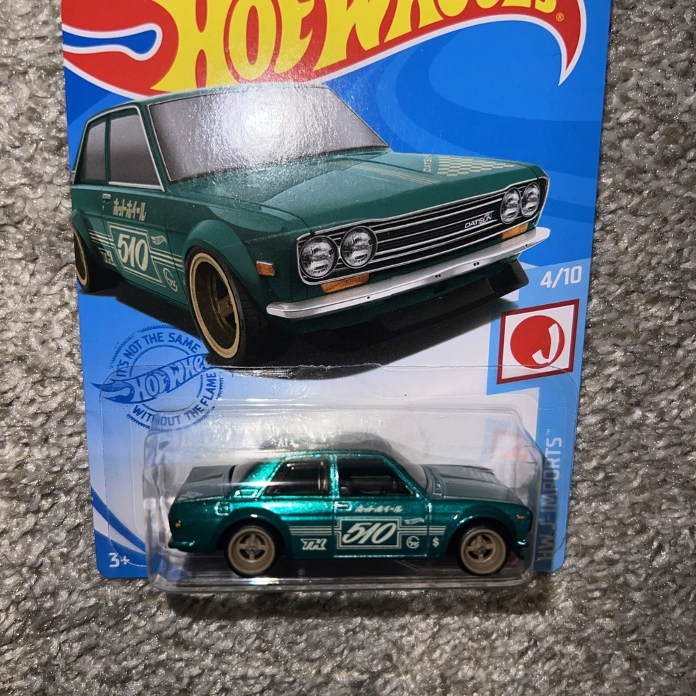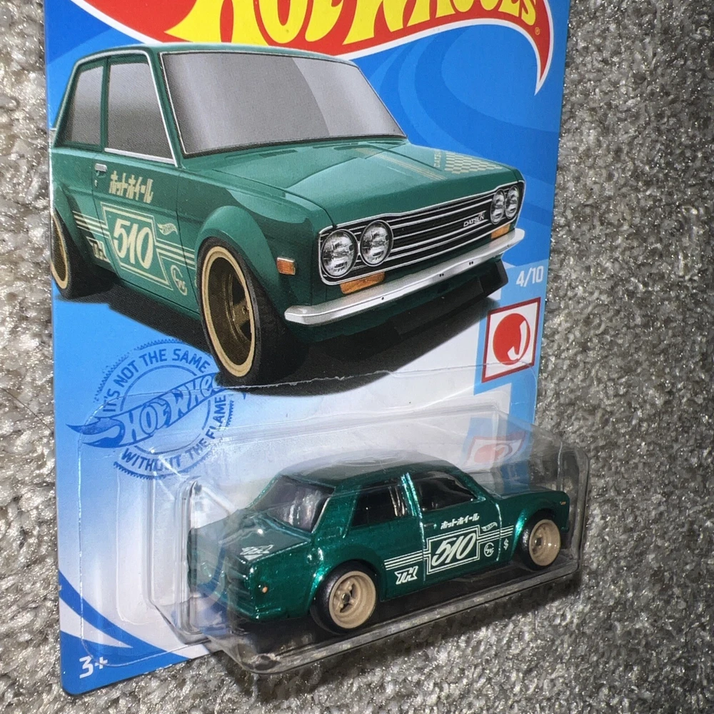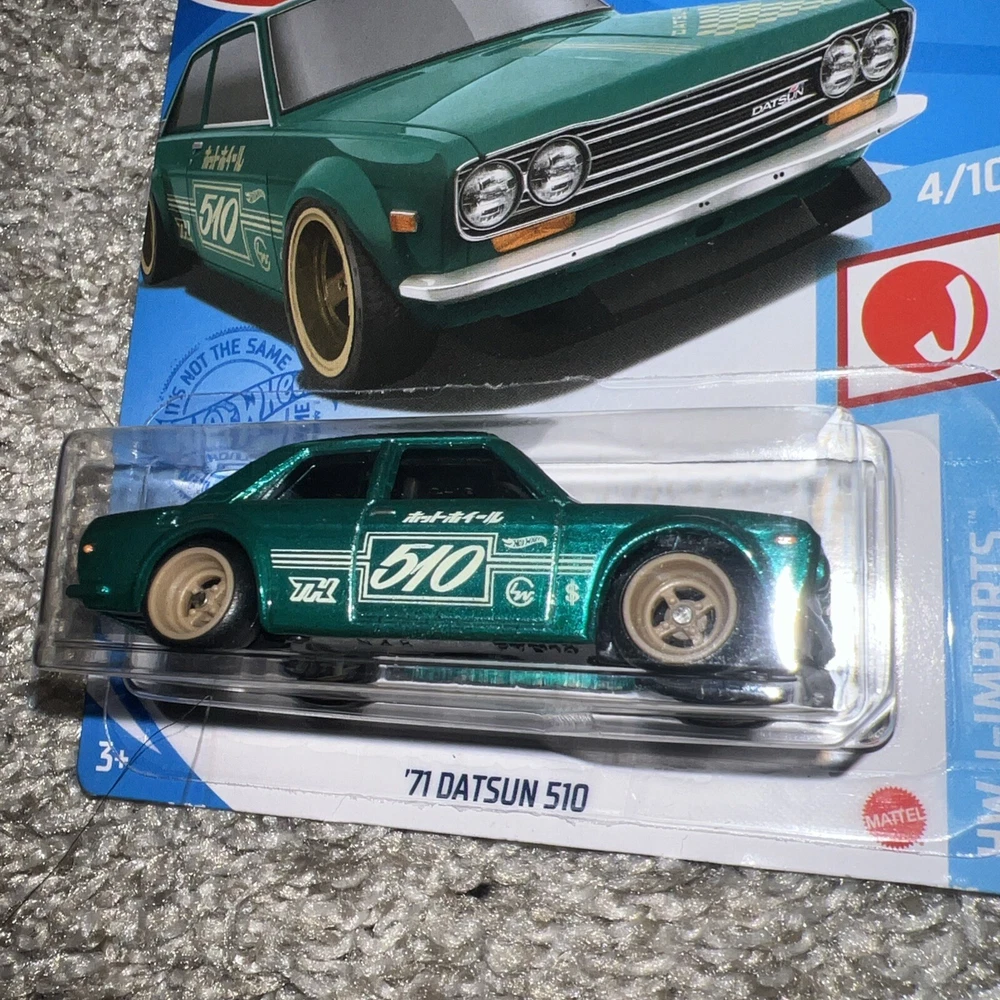 The 2021 Hot Wheels Super Treasure Hunt 71 Datsun 510 is a 1:64 scale diecast car featuring a green color scheme. Part of the Hot Wheels series, this special edition model is a sought-after treasure hunt item for both boys and girls collectors. The unopened box includes a protector to keep the vehicle in pristine condition. This car is a representation of a 1971 Datsun 510, making it a desirable addition to any Hot Wheels or diecast car collection.