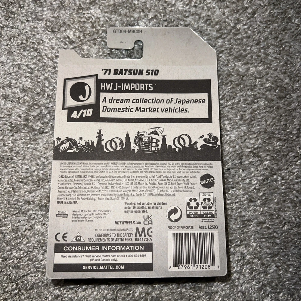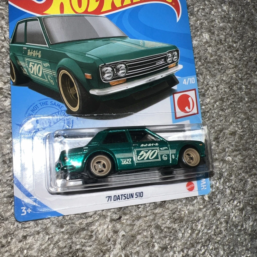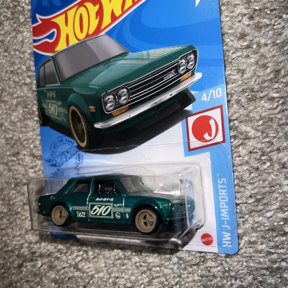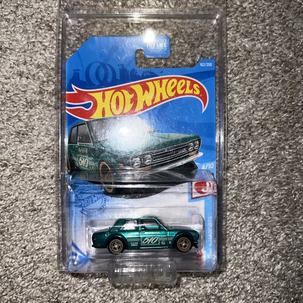 The 2021 Hot Wheels Super Treasure Hunt 71 Datsun 510 is a 1:64 scale diecast car featuring a green color scheme. Part of the Hot Wheels series, this special edition model is a sought-after treasure hunt item for both boys and girls collectors. The unopened box includes a protector to keep the vehicle in pristine condition. This car is a representation of a 1971 Datsun 510, making it a desirable addition to any Hot Wheels or diecast car collection.
