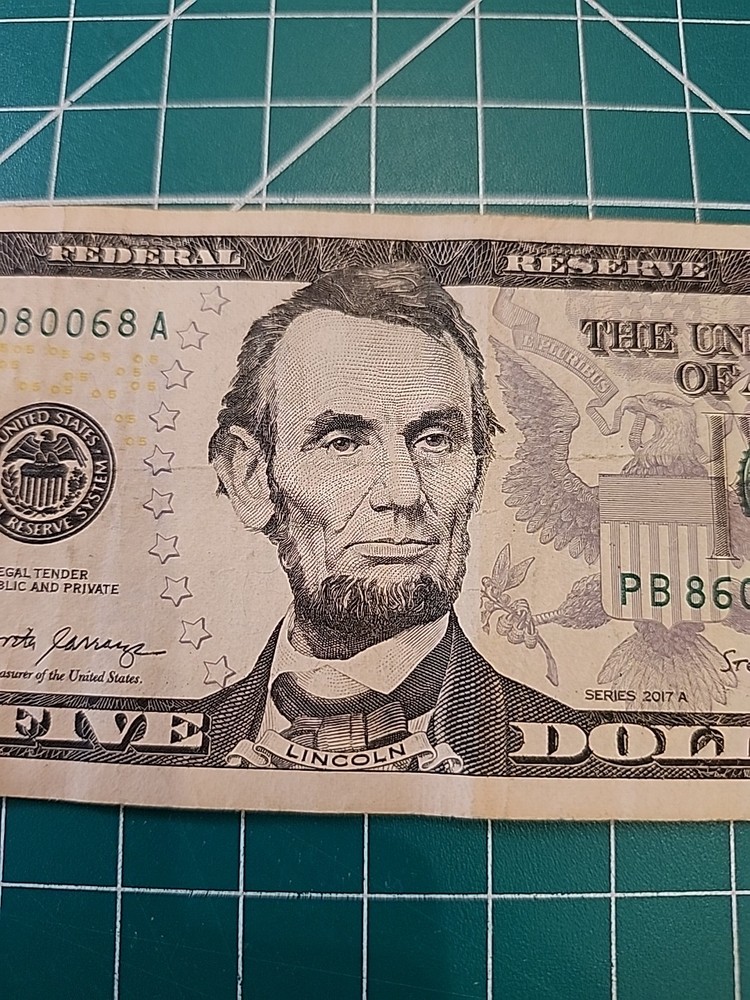 The 2021 Note - Trinary PB86080068 is a circulated $5 banknote from the United States. This Federal Reserve Note features a unique design and has not been graded or certified. It is a valuable addition to any collection of US paper money, representing a piece of currency history from the current year. I offer fast shipping with postal proof packaging. I do combine shipping on orders. Thank you for looking.