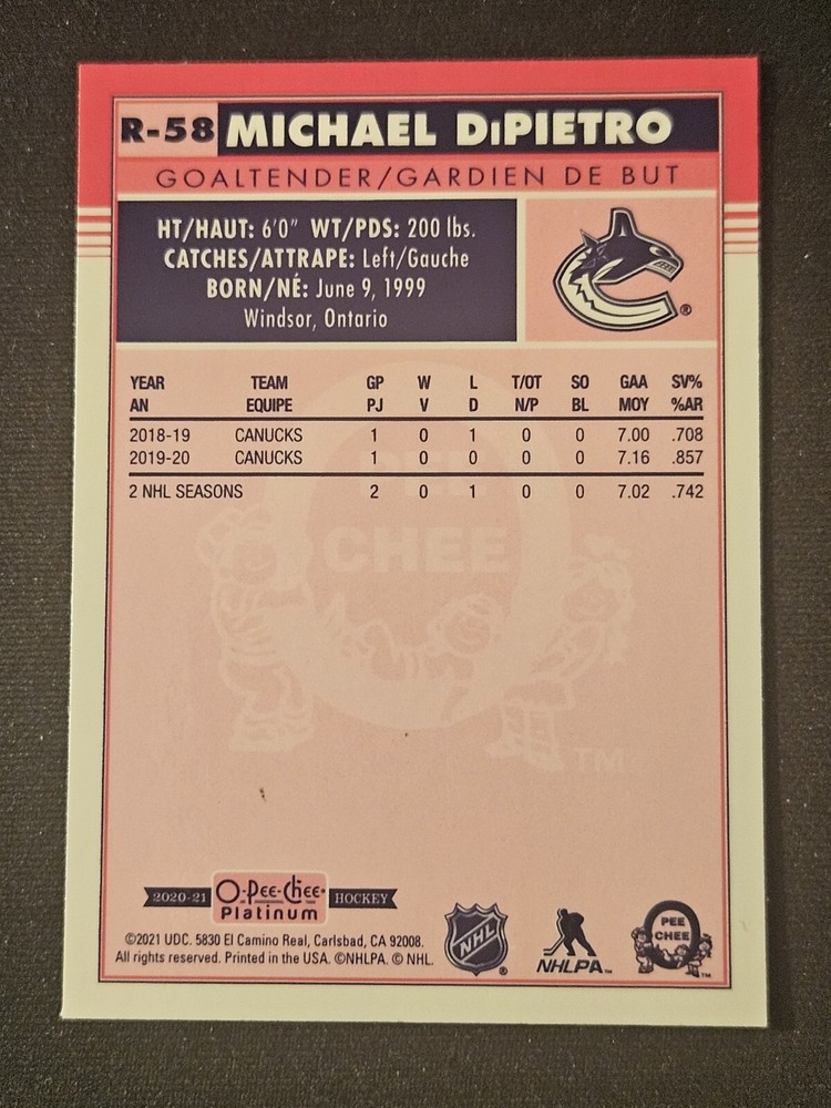 This Michael DiPietro retro rookie card is a must-have for collectors! The sharp design and vintage vibe make it stand out, especially with those sweet marquee colors. A fantastic pull for any Canucks fan or hockey memorabilia enthusiast—highly recommend adding this gem to your set! 🚨🔥