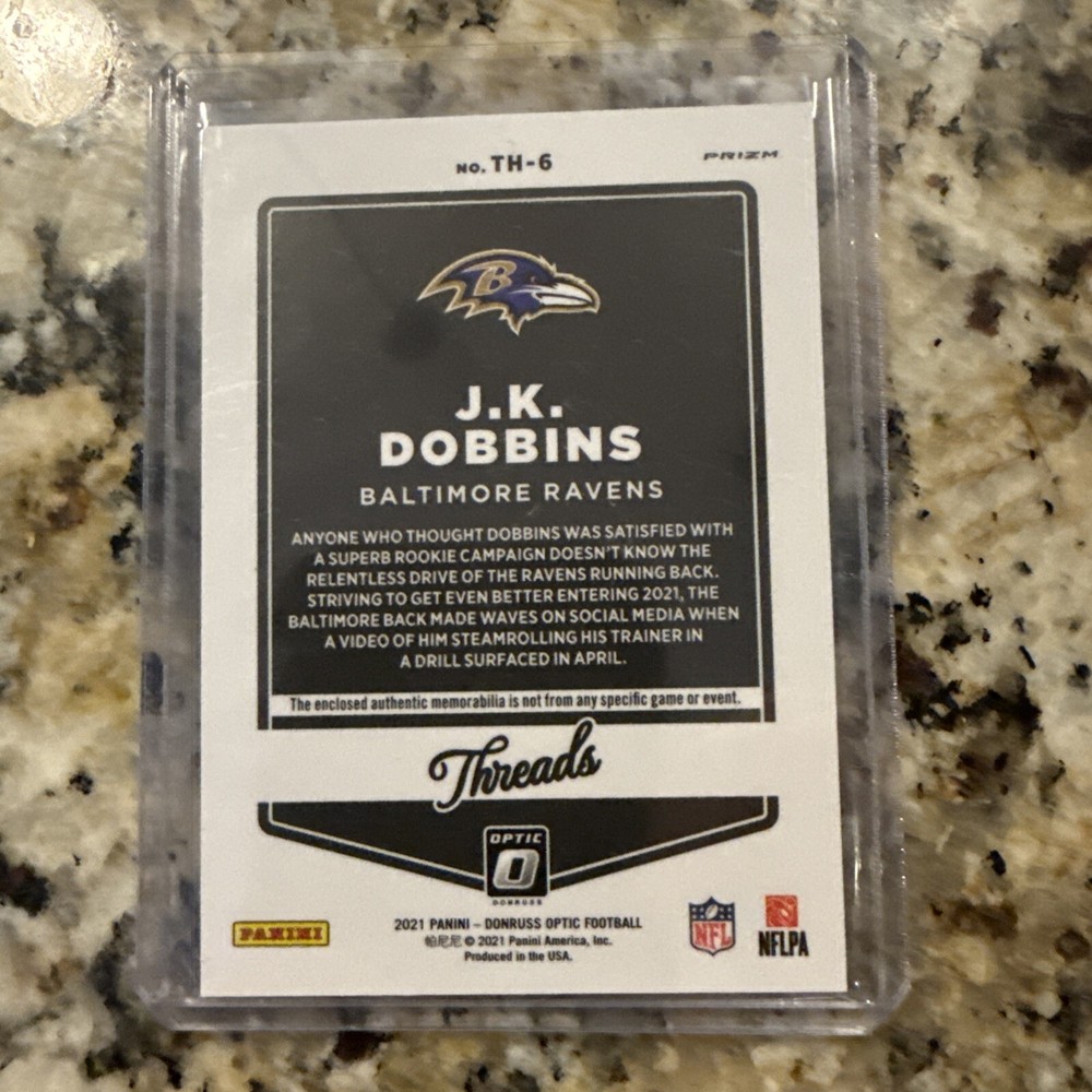 2021 Panini Donruss Optic JK Dobbins Blue Hyper Threads Patch Insert Card #TH-6