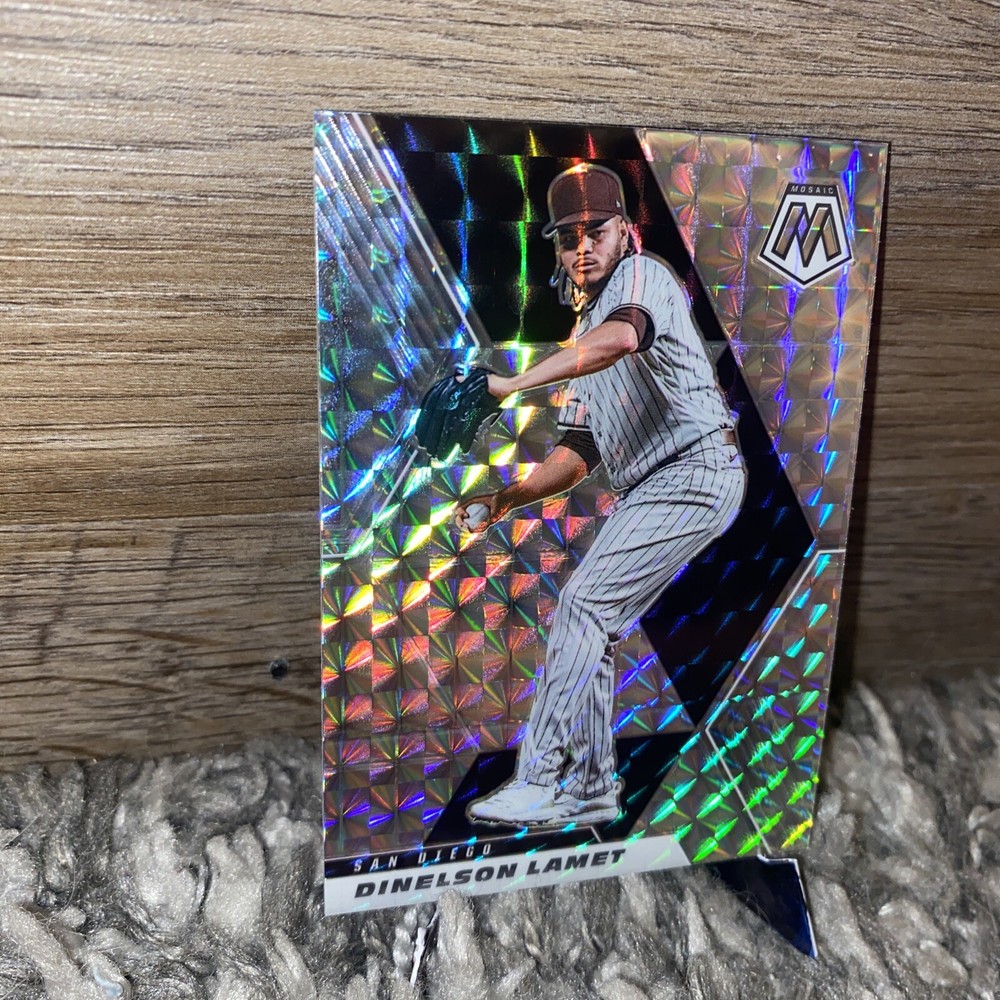 This Dinelson Lamet Silver Prizm card is a sharp-looking addition to any Padres or modern baseball collection! The vibrant colors and crisp details really stand out, and the silver prizm finish gives it a premium feel. Perfect for fans of Lamet or collectors chasing Mosaic parallels—great condition straight from a trusted seller. Highly recommend!