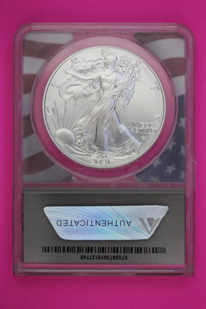 Strike Type: Satin Brand: US Mint Coin: American Eagle Composition: Silver Grade: MS 70 Shape: Coin Year: 2021 Brand/Mint: U.S. Mint Certification: ANACS Fineness: 0.999 Total Precious Metal Content: 1 Troy Ounce Precious Metal Content per Unit: 1 oz Country/Region of Manufacture: United States