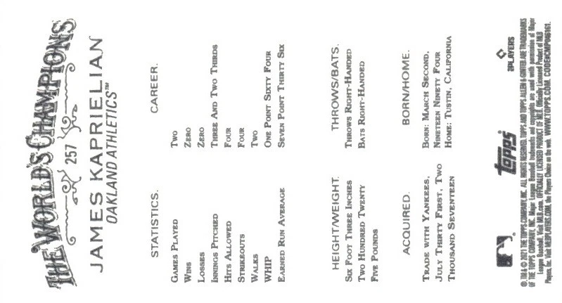 2021 Topps Allen and Ginter Mini Black Border #257 James Kaprielian Front Back Sport: Baseball Set: 2021 Topps Allen and Ginter Mini Black Border Year: 2021 Item#: 257 Player: James Kaprielian Team: Oakland Athletics Brand: Topps Allen and Ginter Manufacturer: Topps Co. Grading Company: Raw Grade SetType: Parallel Item Condition: Near Mint/Mint 2014 Beckett Collectibles, LLC. All Rights Reserved Powered by: Thank you for choosing Burbank Sportscards, the sports cards superstore. We offer a large selection of singles across all sports. Visit our ebay store to view all our items available. Our Shipping Policy We offer Free Standard Shipping to all Domestic customers. Options for Expedited shipping are also available at checkout. For our international customers, shipping is $9.99 for the first item, and $0.25 for each additional item. Note to all customers: To qualify for combines shipping, we ask our customers to add items into the shopping cart. Please note, we do not combine orders that are placed separately. Our Service: Generally, our turnaround is super quick as we process and send out orders same day payment is received. Stock Availability: We do our best to ensure all items are in stock; however, in case of the rare stock out, the customer will have the option for a replacement card, or we will process a refund so the order is not held up. Our Images: Many of our images are stock photos from Beckett archives. They are a representation of the actual card you would receive. If you have any questions regarding the item you're interested in, please feel free to ask (serial numbers and relic pieces may vary) Moreover, in a case of a wrong or defective photo, please notify us, so we can adjust it. Other FAQ's: -When buying multiple cards, do you top load each item? No; however, we do try to insure all items are shipped securely. If you wish to have all of your cards top loaded it is a paid service and can be arranged. Please email for more details. For other questions, please feel free to ask. Thank you.