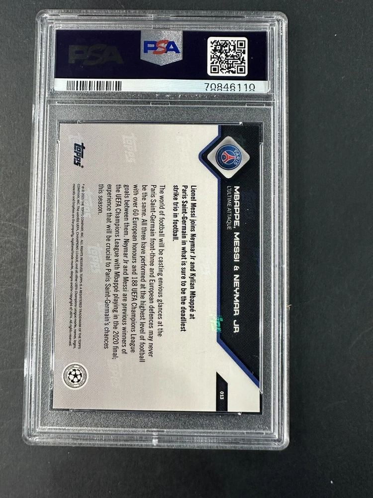 2021 Topps Now UCL Kylian Mbappe Lionel Messi Neymar Jr Attaque PSA 10 BO4