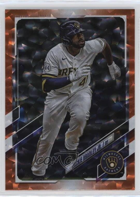 2021 Topps Update Series - [Base] - Orange Foil #US111 Jackie Bradley Jr. Qty Made: 299 - Baseball Card - Featuring the Milwaukee Brewers - Featuring Jackie Bradley Jr. Search for more: 2021 Topps Update Series Search for more: 2021 Topps Update Series - [Base] - Orange Foil View all of our Listings Auctions Buy It Now About Us Located in the beautiful Pacific Northwest, COMC (Check Out My Cards) is the world's largest consignment service for trading card singles. More than 10,000 people have used our consignment service to list over 50 million trading cards. Find out how we can help you consign your items on eBay by contacting us through eBay messaging. COMC -- "The Safe & Easy Way to Buy & Sell" Representative Image - Select Specific Item above to see image of actual item Representative Image - Select Specific Item above to see image of actual item Raw Condition for Modern Cards Unless otherwise noted, raw modern cards are listed in Near Mint-Mint condition or better. A NM-MT card appears to be Mint at first glance, but upon closer inspection, may exhibit some of the following: minor print defects (e.g. roller marks, print line, dimple), minor scratches, slight edge wear, and slight corner wear. Centering is clearly visible in the images provided and does not factor into our condition assessment. Raw Condition for Vintage Cards Unless otherwise noted, raw vintage cards are listed in Excellent condition or better. An EX card may exhibit some of the following: minor rounding of corners, surface wear, print defects, light scratches, and slight edge wear/chipping. Centering is clearly visible in the images provided and does not factor into our condition assessment. Domestic Shipping Combined shipping for multiple items is available. To receive combined shipping, please ensure all desired items are in your eBay shopping cart before proceeding to checkout. eBay limits orders to 40 items per order. We automatically combine multiple orders placed on the same day. If you place multiple orders on the same day, please contact us to request a refund of applicable shipping costs. Signature confirmation may be required on invoices over $400. All cards are protected and shipped securely. International Shipping COMC offers eBay's International Shipping (EIS) for international orders under $2,500* (see country exceptions below). All duties and import fees are paid at checkout; in the rare event that there are additional import fees upon delivery, these are borne by the buyer. EIS packages route through a shipping hub in Erlanger, KY before shipping to their final destination. Please note that EIS does not allow for combined shipments. The shipping rates are determined by eBay and cannot be adjusted. *Maximum sale price exceptions: Colombia, Kuwait ($2,000); Taiwan ($1,539); Chile, Costa Rica, Guatemala, Honduras, Trinidad and Tobago ($1,000); Antigua and Barbuda, Aruba, Belize, Dominica, Grenada, Philippines, Saint Kitts and Nevis, Saint Lucia, Montserrat, Turks and Caicos Islands ($500); Dominican Republic, El Salvador ($200). Please request a shipping quote through eBay messaging for orders that exceed the maximum sale price supported by eBay's International Shipping. You will be responsible for all duties and import fees for international orders shipped outside the EIS. All cards are protected and shipped securely. Payment COMC does not accept offers on our cards through our eBay storefront. COMC utilizes eBay’s managed payments system. If you are experiencing difficulties making a payment, please contact eBay for assistance. Return Policy Returns are only accepted on the rare occasion the item is not as described. If you are making a return, please initiate the return process through eBay so a mailing label can be provided for you. Prior to listing, our expert team carefully assessed this item to represent it accurately. Please review the description and high-definition images prior to purchasing to ensure this item meets your satisfaction. We welcome you to contact us if you have further questions about this item. Trust and Integrity COMC carefully assesses each item consigned to us to prevent fraudulent items from entering the marketplace. If you believe an item offered on COMC may be fraudulent, please contact us with details so we can investigate the issue. Items we determine are outside our supported items policy may be removed. Last Modified: 6/10/2025 8:16:35 PM PDT