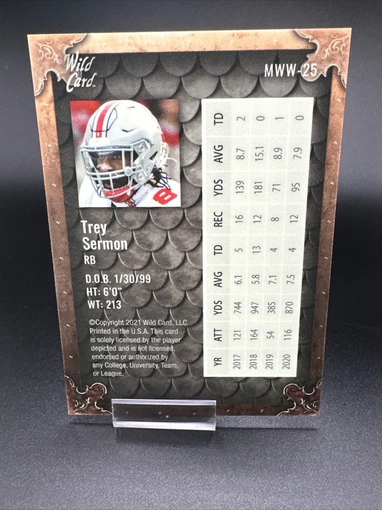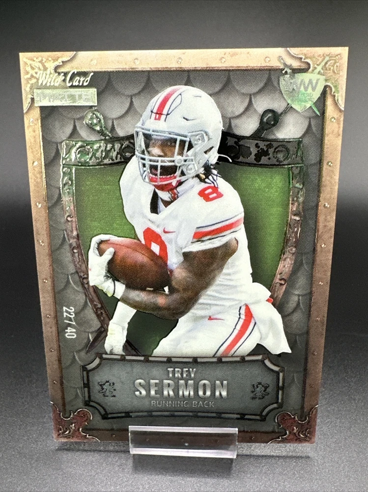 This 2021 Wild Card Matte Trey Sermon RC Weekend Warriors Rookie SP /40 is a must-have for any San Francisco 49ers, Ohio State Buckeyes, or Oklahoma Sooners fans. Featuring a stunning design and serial numbering, this sports trading card is an original and authentic piece. The card is in near mint or better condition and is a great addition to any collection. With its rookie designation, short print status, and parallel features, this card is highly sought after by collectors. Get your hands on this rare and unique card today! Free shipping. Please see pic for conditions of the card you will actually be receiving. Message with any questions. Thank you!