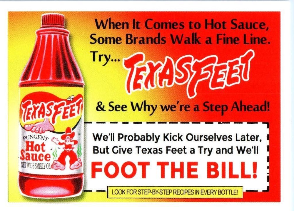 WACKY PACKAGES - 2021 AUGUST WACKY PACKAGES VARIANT COUPON BACKED CARDS # 8 TEXAS FEET HOT SAUCE 2021 AUGUST WACKY PACKAGES VARIANT COUPON BACKED CARDS # 8 TEXAS FEET HOT SAUCE Click images to enlarge Description THIS ITEM IS IN STOCK WAITING FOR YOU!!!! The Shipping fee for this item is $0.00 in the USA - USPS PICTURE NUMBER - WAVE SIX 4948 Pictures sell! Auctiva offers Free Image Hosting and Editing. 300+ Listing Templates! Auctiva gets you noticed! The complete eBay Selling Solution. Track Page Views With Auctiva's Counter