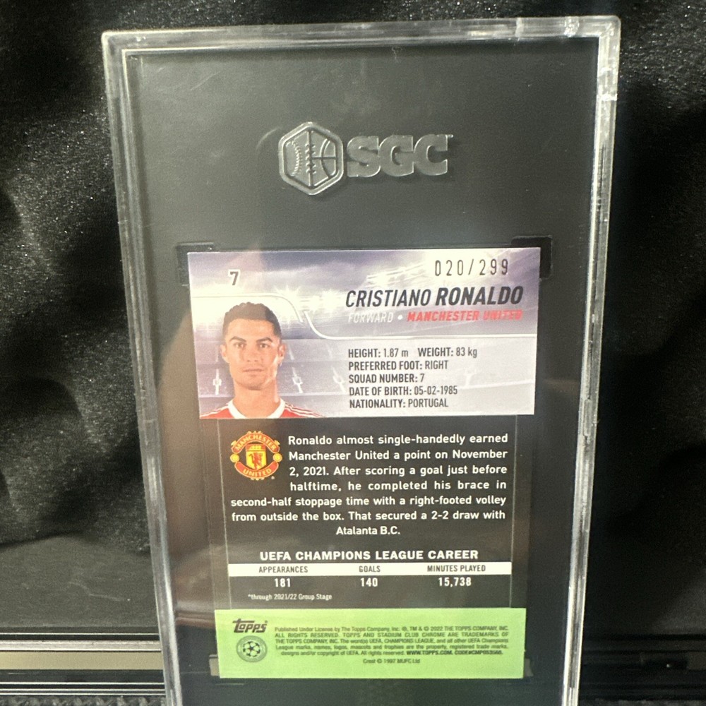 2021-22 Topps Stadium Club #7 CRISTIANO RONALDO CHROME UCL BLACK & WHITE 20/299 Gem mint 10
