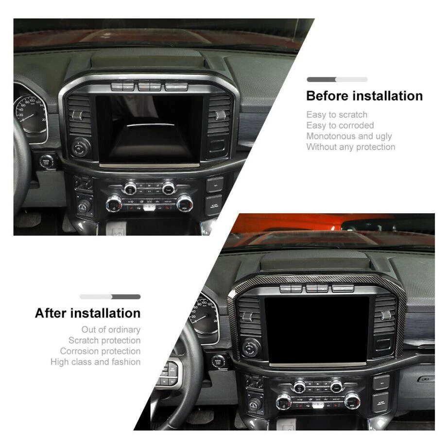 Fitment: Fit For Ford F150 F-150 2021 2022 2023 "Before buying, please note that this product is not suitable for the car model of F-150 Lightning (LARIAT, Platinum)" Feature: Condition:100% Brand new Material: Made of high quality ABS Color: Carbon Fiber Style(Black) Package including:1PCS Made in a ISO9001 Factory,good quality and have been exported all over the world Easy installation.3M automotive adhesive tape is attached. (Sold as seen, please ensure suitability carefully before purchase) INSTRUCTION MANUAL IS NOT INCLUDED For 2021-2023 Ford F150 ABS Carbon Center Console Dash GPS Navigation Cover Trim Fitment: Fit For Ford F150 F-150 2021 2022 2023 "Before buying, please note that this product is not suitable for the car model of F-150 Lightning (LARIAT, Platinum)" Feature: Condition:100% Brand new Material: Made of high quality ABS Color: Carbon Fiber Style(Black) Package including:1PCS Made in a ISO9001 Factory,good quality and have been exported all over the world Easy installation.3M automotive adhesive tape is attached. (Sold as seen, please ensure suitability carefully before purchase) INSTRUCTION MANUAL IS NOT INCLUDED Installation method: Step1: please clean the place with 50% alcohol to make sure no dust. Step2: remove the 3m glue in back; Step3 : heat the 3m glue by hot air gun;(A tip for putting on with supplied 3m tape is to warm the handles and the covers this makes the glue on the tape more sticky and they will stay on for ever!) Step 4: install the products in the right place ,Don't wash your car within 48hours. Customer Service If you cannot find the answers to your questions in this listing, please contact us , we will reply u ASAP,we will try our best to pleasure to serve u ! we hope have more happy and longtime shopping experience with u ! Shipping We will ship your order within 120 hours after receiving your verified payment (Excluding Weekends and Public Holidays) ! If u need delivery now , pls inform us , we will delivery it ASAP! shipping Shipping and handing Payment Refunds and returns About us shipping Country Approx / Delivery time United States : 8-25 working days United Kingdom / Australia / Canada : 20-35 working days Brazil / South America : may take up to 5-8 weeks due to strict Custom Inspection Italy / France / Spain / Germany/Eastern Europe : may take up to 6-8 weeks due to strict Custom Inspection Shipping and handing Item will be shipped within 24 -48 hours after full payment is received. · We ship worldwide with flat rate China Post , and other standard international shipping. this international order may take a longer time to arrive, Normally the shippment to worldwide is used to take 8 to 25 business days, exclude Weekend. Payment We accept PayPal only. Payment must be received in 7 business days of auction closing. Any special request cannot be accepted after 24 hours of payment, because most of orders will be processed instantly and same day dispatched. Refunds and returns Please contact us before leaving Netural or Negative feedback if you are not satisfied our service or products. Good communication is helpful for both of us to resolve any problems and issues. We are promising to try our best to provide the best service and 100% satisfaction for valuable buyer like you · All of the items are new. If it is not in new conditions, refund is offered. Otherwise, replacement can be offered for defective product. We will exchange or give the seller credit to buyer. · Please email us for all returns, and exchange shipping and handling charges are non-refundable. · Customers are responsible for return shippment fee except for wrong shipment or defective products. About us If you have any questions, please feel free to email our service specialists 24 Hours a Day, 7 Days a Week, and we will reply you ASAP. If no response within 24 Hours, please check the spam of mail box or kindly re-send it to us. We greatly appreciate your POSITIVE feedback. Please do NOT leave negative or neutral feedback without any contact. If you haven't received item in 30 days, please contact us and we will arrange refund. Advantage Will Never fade or rust Country/Region of Manufacture China Items Automotive > Exterior Accessories Approve Made in an ISO 9001 facility to ensure good quality Color Carbon Fiber Style(Black) Manufacturer Part Number Does Not Apply Placement on Vehicle Interior, Front, Centre Brand Unbranded Fitment Type Paste covering decorations Manufacturer Warranty 1 Year External Testing Certification ISO9001(ISO9001) Compatible with For Ford F150 F-150 2021 2022 2023 Material High quality ABS plastic Features Beautiful & Scratch Resistant Finish Painted Type Hood Package include 1PIECES/SET