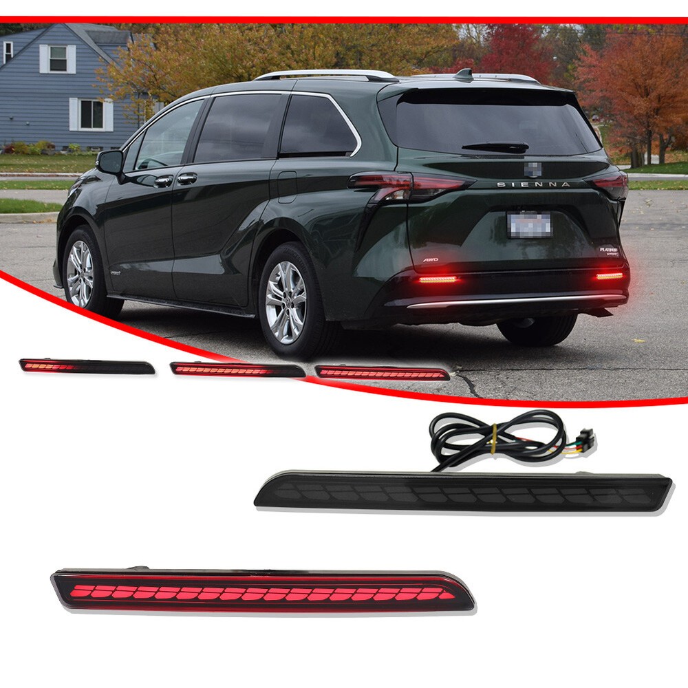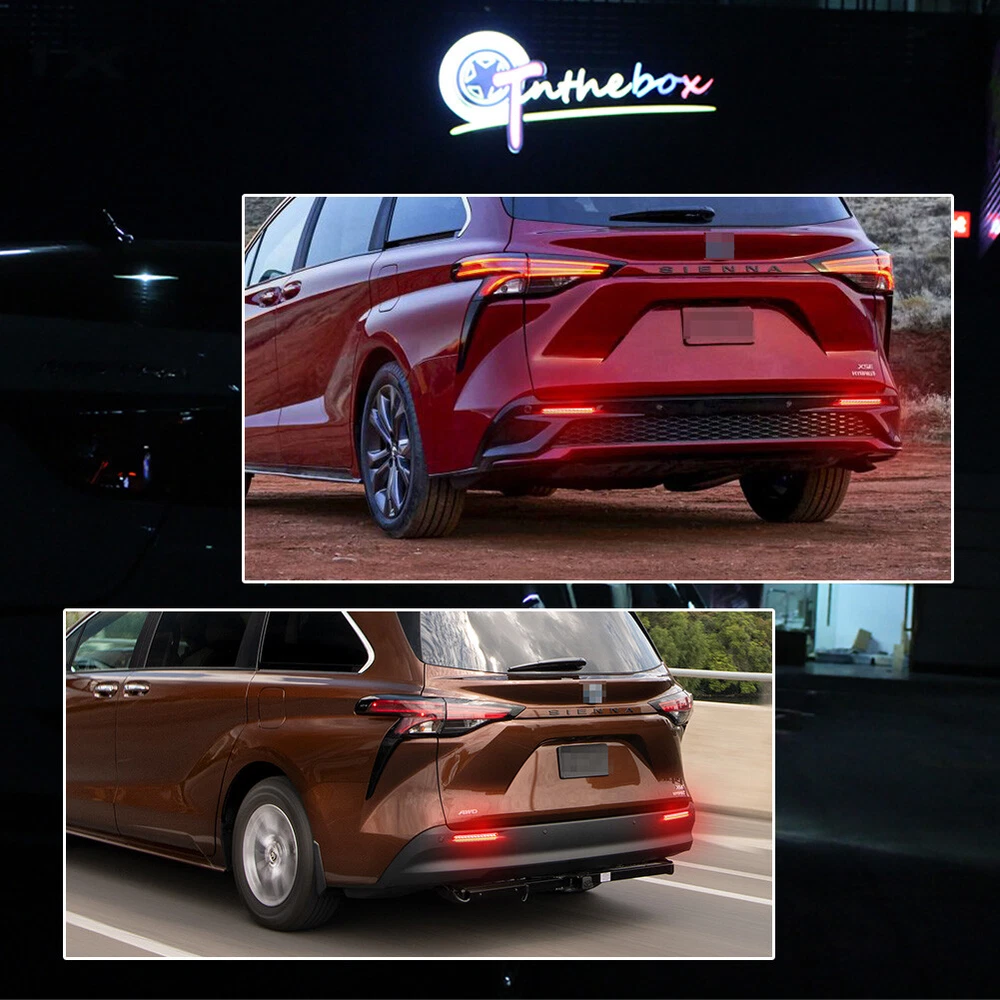 For Toyota Sienna 2021-2023 Smoke Red LED Rear Bumper Fog Brake Signal DRL Light For Toyota Sienna 2021-2023 Smoke Red LED Rear Bumper Fog Brake Signal DRL Light Want to give your Sienna an unique and sporty look with increased safety and style? This page features a set of brand new 3D optic smoked lens red LED rear bumper reflector tail brake lights w/ sequential turn signal lights, rear fog lighting kit For 2021- 2023 Toyota Sienna 3 Functions: Replaces the OEM rear bumper bulb-less reflectors with LED as add-on tail lights (50% Red Brighter) , brake lights (100% Red Brighter) and turn signal lights ( Dynamic Sequential Red Lighting). Give your Sienna upgraded rear LED lighting for increased safety and style at night! Exact fit and direct replacement, super bright LEDs have a faster on/off response time for driving safety & perfect design enhances your car's exterior look Just Plug and Play , Easy to install, save more install time Feature: Smoked lens LED Color: Red P owered by high power LED SMD Brilliant Red LED color Fits for 2021 2022 2023 Toyota Sienna It replaces the stock Rear Bumper Red Reflector Assembly and functions as Add-on LED Tail Running / Rear Fog Light (50% Red Brighter) , Brake Stop Light (100% Red Brighter) and Sequential Red Turn Signal Indicator Light in OEM fitment Plug and Play, Easy to install DOT SAE approved Gives car a different appearance that is ideal for show use Lifespan: 50,000 hrs Specification: T ype of Lights: LED Rear bumper tail brake signal light (3 in 1) with smoked lens reflector Waterproof: IP67 Lens color: Smoked Light color: Red Installation position: Rear Bumper Reflectors Ultrasonically sealed L ow power consumption; Quick Instant Start-Up time Fit for: For 2021 2022 2023 Toyota Sienna Package included: One Pair (L&R) LED Rear Bumper Reflector Lights One Pair Plug & Play Connectors Installation: To install these LED bumper reflectors, you simply need to access to the back of the rear bumper, push to remove the stock bumper reflectors and directly replace back with these LED reflectors and then tap the wires accordingly. Plug and Play, Easy to install. Note: Professional installation is highly recommended! Payment Delivery details Terms of sales Contact us Feedback Payment We only accept payment via PayPal. Please make sure shipping address on your PayPal account is correct and up-to-date. Payment from bank account and all major credit cards will be accepted through secure payment processor PayPal. Delivery details Item will be shipped to buyer's PayPal shipping address within 1 business day after clear payment received. Tracking number of domestic orders will show up on buyer's eBay account once order is shipped. Please make sure shipping address on your PayPal account is correct & up-to-date. All of our items are shipped from our GA, USA warehous e. * Please note that post office doesn't process parcel on Saturday, Sunday & public holidays. Terms of sales Warranty policy: This item comes with 60 day exchange (replacement) warranty. Buyer could choose exchange to same item or apply store credit to other items in our store. Exchange will be processed after we received return. We only accept refund request for un-opened or un-used item, buyer has to return item in original condition and retail package within 30 day. 20% restocking fee will be deducted for all refund cases. Refund will be processed after we received return. Buyer is responsible for return shipping cost of ALL exchange/refund cases. We will cover shipping cost when sending out replacement. Products that are modified/customized are NOT covered by our return/exchange policy. Compatibility issue: Please check actual stock bulb model & housing size before purchasing replacement bulbs. Compatibility list on eBay listing is not a complete list and it is a known issue that there are errors on it. If you encounter model/functional compatibility issue, please contact us for assistance. We will help you exchange to compatible item (if available). We only accept refund request if we don't carry compatible item. 20% restocking fee will be deducted for ALL refund cases. Buyer is responsible for both return and resend shipping cost when exchanging an item with compatibility issue. We will cover resend shipping cost if compatibility problem is directly caused by incorrect information on listing. Buyer will be charged for price difference when upgrading to a more expensive model. Contact us Should you have any question/concern regarding our item/auction, please feel free to send us an eBay message. We will answer your question in a timely manner (within 12 hours in most cases). Reply will show up on your eBay account and goes to the email address associated with your eBay account. If you don't receive our reply within 2 business day, please kindly check your junk-mail box. If you are interested in bulk order, please contact us for a quote. Feedback We appreciate your business and strived to improve our customer service and our commitment to quality. We will leave a positive feedback immediately after payment is received. We appreciate a positive feedback as much as you do. If for some reason there is any issue with the purchase, please contact us prior to leaving feedback, and we will be glad to work with you to have it resolved.