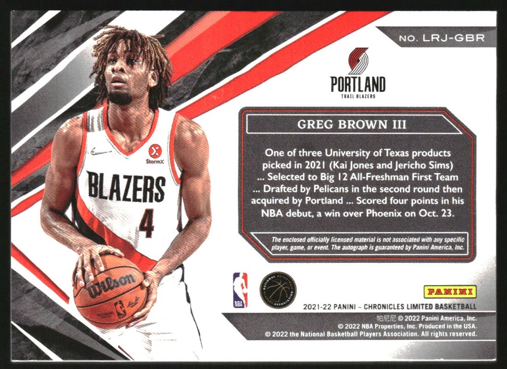 2021-22 Chronicles Limited Rookie Jersey Autographs #18 Greg Brown III /99