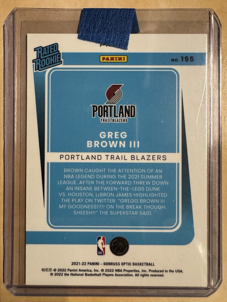2021-22 Panini Donruss Optic #195 GREG BROWN III Rated Rookie Red Choice Mojo RC Portland Trail Blazers ***eBay Standard Envelope