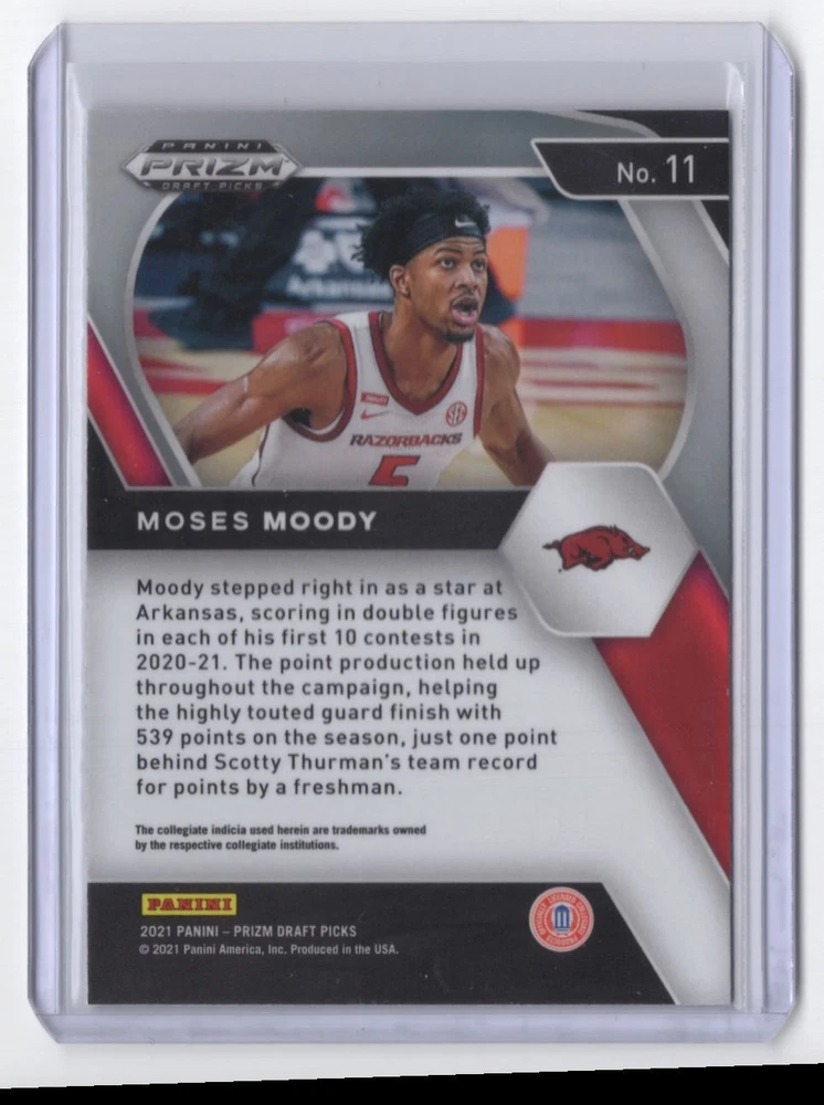 About Me Other Listings Feedback Add to Favorites Contact Me Striking Cards 901 2021-22 Panini Prizm Draft Picks Moses Moody Rookie Arkansas Razorbacks #11 No stock photo / These are real scans or pictures Details Description: Moses Moody Category: Basketball Year: 2021 Product: Panini Prizm Draft Picks Team: Arkansas Razorbacks Card Number: 11 Rookie: Yes Dimensions: 4" x 3" SKU: BK B0001 R01 G (566) Listing By Kronocard trading cards software v2.7.0.1