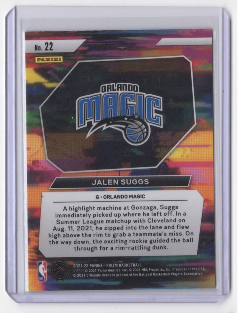 About Me Other Listings Feedback Add to Favorites Contact Me Striking Cards 901 2021-22 Panini Prizm Instant Impact Jalen Suggs Orlando Magic #22 No stock photo / These are real scans or pictures Details Description: Jalen Suggs Category: Basketball Year: 2021 Product: Panini Prizm Instant Impact Team: Orlando Magic Card Number: 22 Dimensions: 4" x 3" SKU: BK B0001 R01 C (148) Shipping If combined shipping is requested, we will send an invoice with the combined shipping charges as soon as possible. Please keep in mind that, in order to keep shipping costs down, we may need to put two cards into the same top-loader. Also, keep in mind that the tracking on eBay Standard Shipping (plain white envelope) is not very dependable. If you would like upgraded shipping to Ground Advantage, which gives more accurate tracking, just ask and we'll send you an invoice with those amounts! Listing By Kronocard trading cards software v2.6.5.1