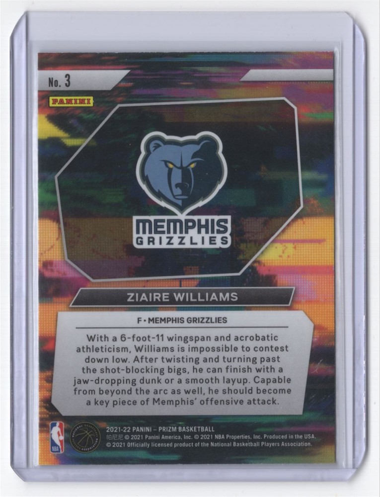 About Me Other Listings Feedback Add to Favorites Contact Me Striking Cards 901 2021-22 Panini Prizm Instant Impact Ziaire Williams Rookie Memphis Grizzlies #3 No stock photo / These are real scans or pictures Details Description: Ziaire Williams Category: Basketball Year: 2021 Product: Panini Prizm Instant Impact Team: Memphis Grizzlies Card Number: 3 Rookie: Yes Dimensions: 4" x 3" SKU: BK B0001 R01 F (17) Listing By Kronocard trading cards software v2.6.5.5