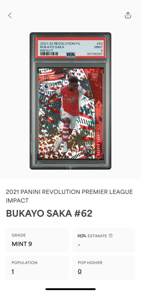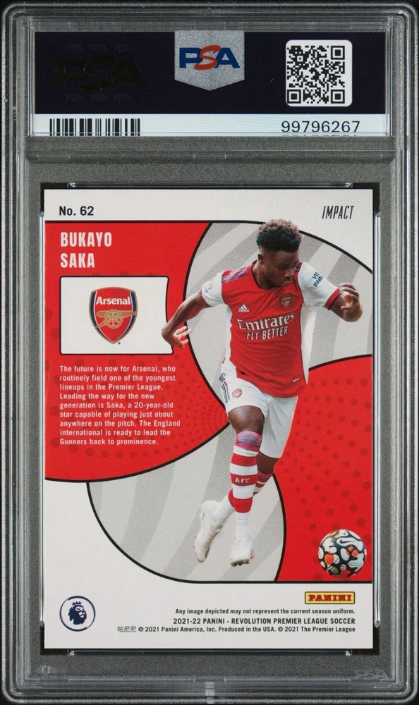 2021-22 Revolution Premier League Impact #62 Bukayo Saka Arsenal PSA 9 Pop 1. Condition is Graded. Shipped with USPS Ground Advantage.