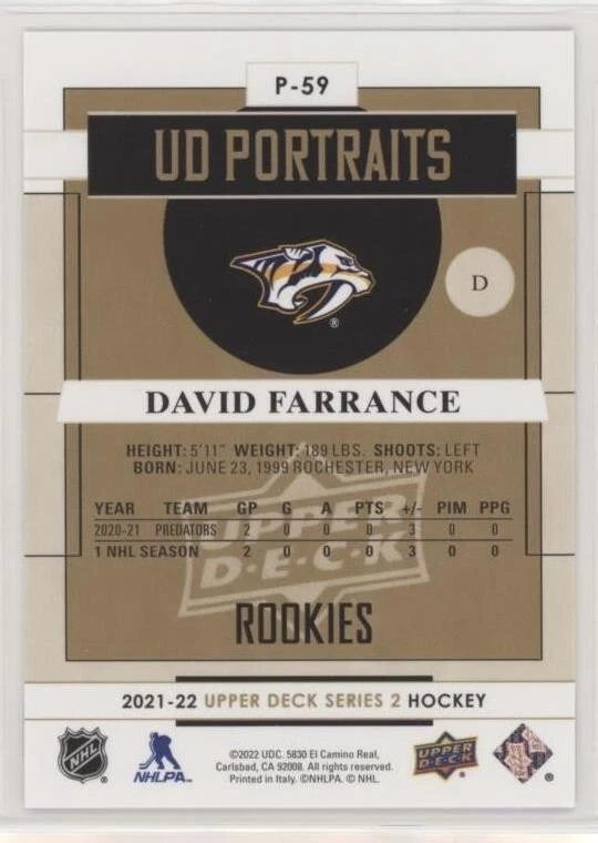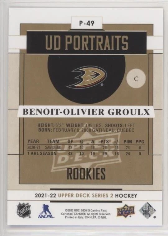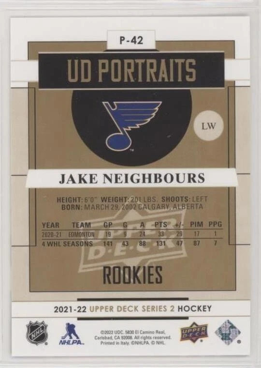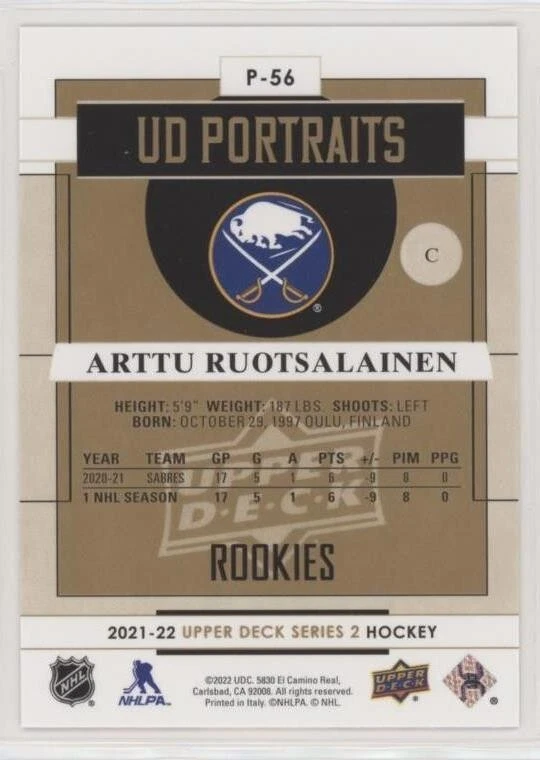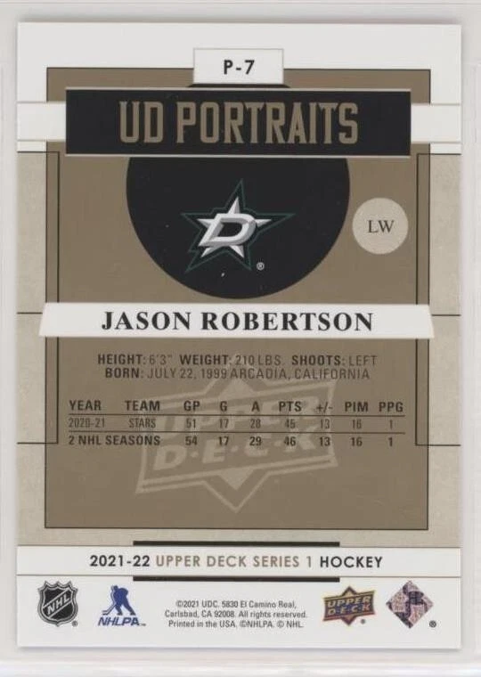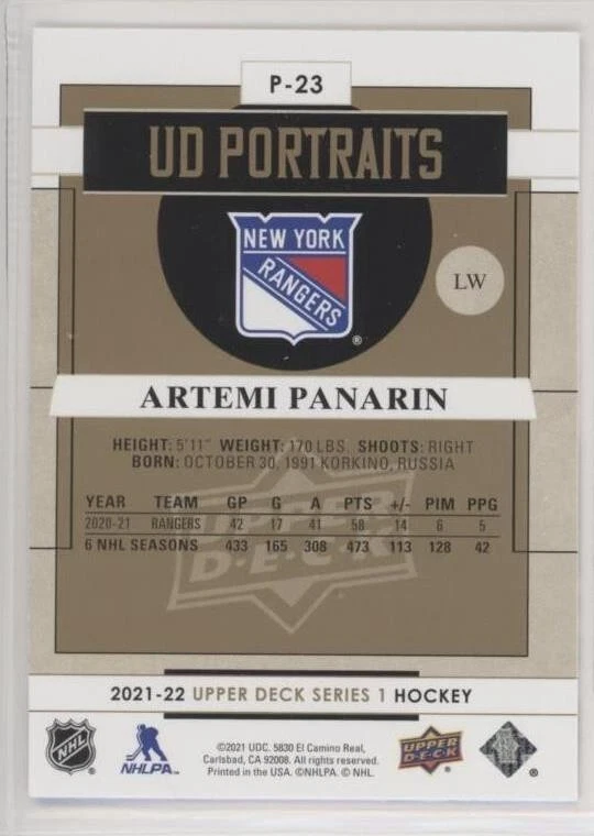 Fresh from Packs 2021-22 Upper Deck Series 1 & 2 UD Portraits #P-1–P-70 (Pick from List) Rookies & Stars Overall UD Portraits Odds : 1:13 hobby, 1:13 e-Pack, 1:13 retail, 1:27 blaster, 1:13 tin, 1:27 fat packs, 1:7 fat packs Well-protected; shipped via USPS For International Orders: When ordering multiple items, eBay International Shipping charges are combined. As a low-cost alternative, international shipping without tracking is available (See ** below). Thanks for your interest and be sure to visit our eBay store for more great items! ** For international shipping without tracking, no refunds will be given if the item is lost or damaged in transit (this is rare). If you prefer to pay for tracked shipping, please send us an email before submitting payment.