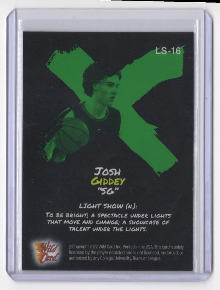About Me Other Listings Feedback Add to Favorites Contact Me Striking Cards 901 2021-22 Wild Card Alumination Light Show Green Josh Giddey Oklahoma City Thunder No stock photo / These are real scans or pictures Details Description: Josh Giddey Category: Basketball Year: 2021 Product: Wild Card Alumination Light Show Green Team: Oklahoma City Thunder Card Number: LS-16 Dimensions: 4" x 3" SKU: BK B0001 R01 F (320) Shipping If combined shipping is requested, we will send an invoice with the combined shipping charges as soon as possible. Please keep in mind that, in order to keep shipping costs down, we may need to put two cards into the same top-loader. Also, keep in mind that the tracking on eBay Standard Shipping (plain white envelope) is not very dependable. If you would like upgraded shipping to Ground Advantage, which gives more accurate tracking, just ask and we'll send you an invoice with those amounts! Listing By Kronocard trading cards software v2.6.5.5
