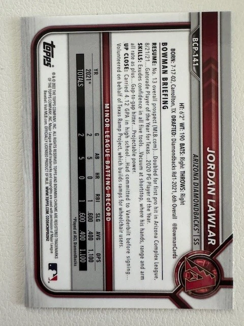 Home2022 Bowman Chrome Jordan Lawlar Mega Mojo Image Variation #BCP-141