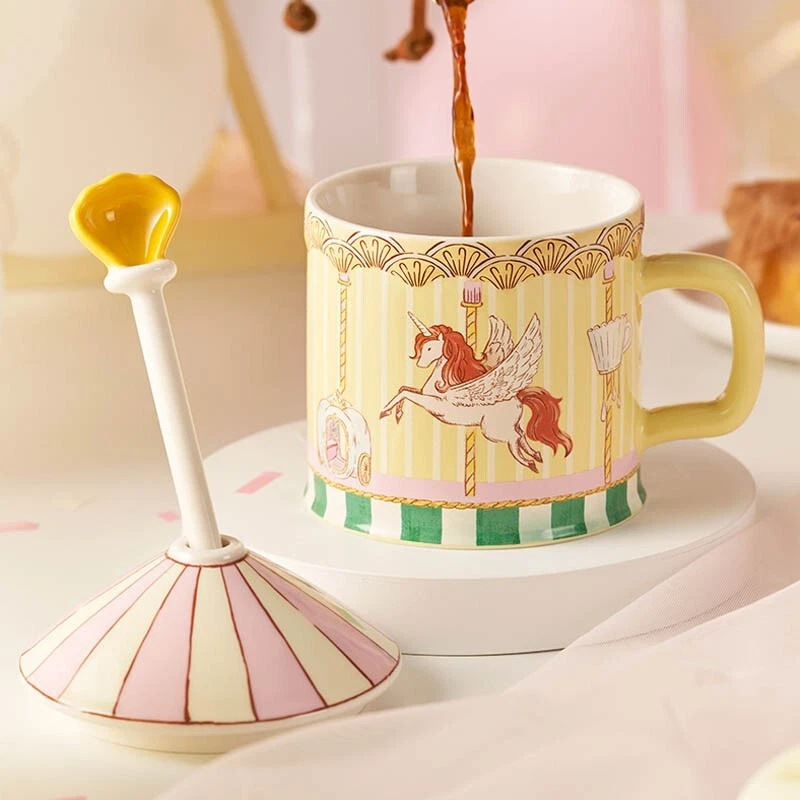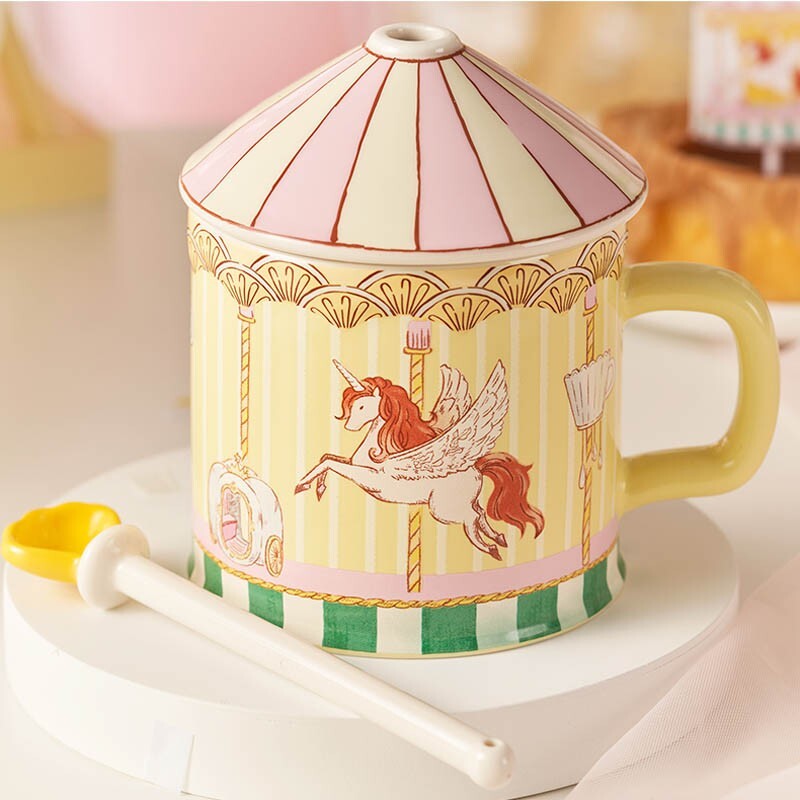 New 2022 China Starbucks Summer Merry-go-round 12oz Ceramic Mug With Muddler Capacity:355ml(12oz) Material:ceramics