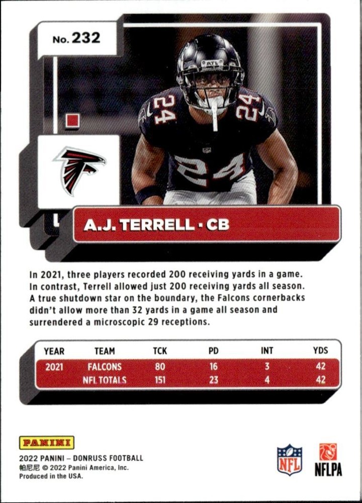 About Me Other Listings Feedback Add to Favorites Contact Me eBay Store JEm_Mint_Trading 2022 Donruss Press Proof A.J. Terrell Atlanta Falcons #232 Insert No stock photo / These are real scans or pictures Details Description: A.J. Terrell Category: Football Year: 2022 Product: Donruss Press Proof Team: Atlanta Falcons Card Number: 232 Special: Insert Dimensions: 3¼" x 2½" SKU: FT A0007 R02 C (20) Listing By Kronocard trading cards software v2.8.1.2