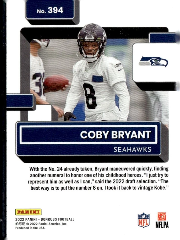 About Me Other Listings Feedback Add to Favorites Contact Me eBay Store JEm_Mint_Trading 2022 Donruss Press Proof Rated Rookies Coby Bryant Rookie Seattle Seahawks #394 No stock photo / These are real scans or pictures Details Description: Coby Bryant Category: Football Year: 2022 Product: Donruss Press Proof Rated Rookies Team: Seattle Seahawks Card Number: 394 Rookie: Yes Special: Insert Dimensions: 3¼" x 2½" SKU: FT A0007 R02 C (1) Listing By Kronocard trading cards software v2.8.1.2