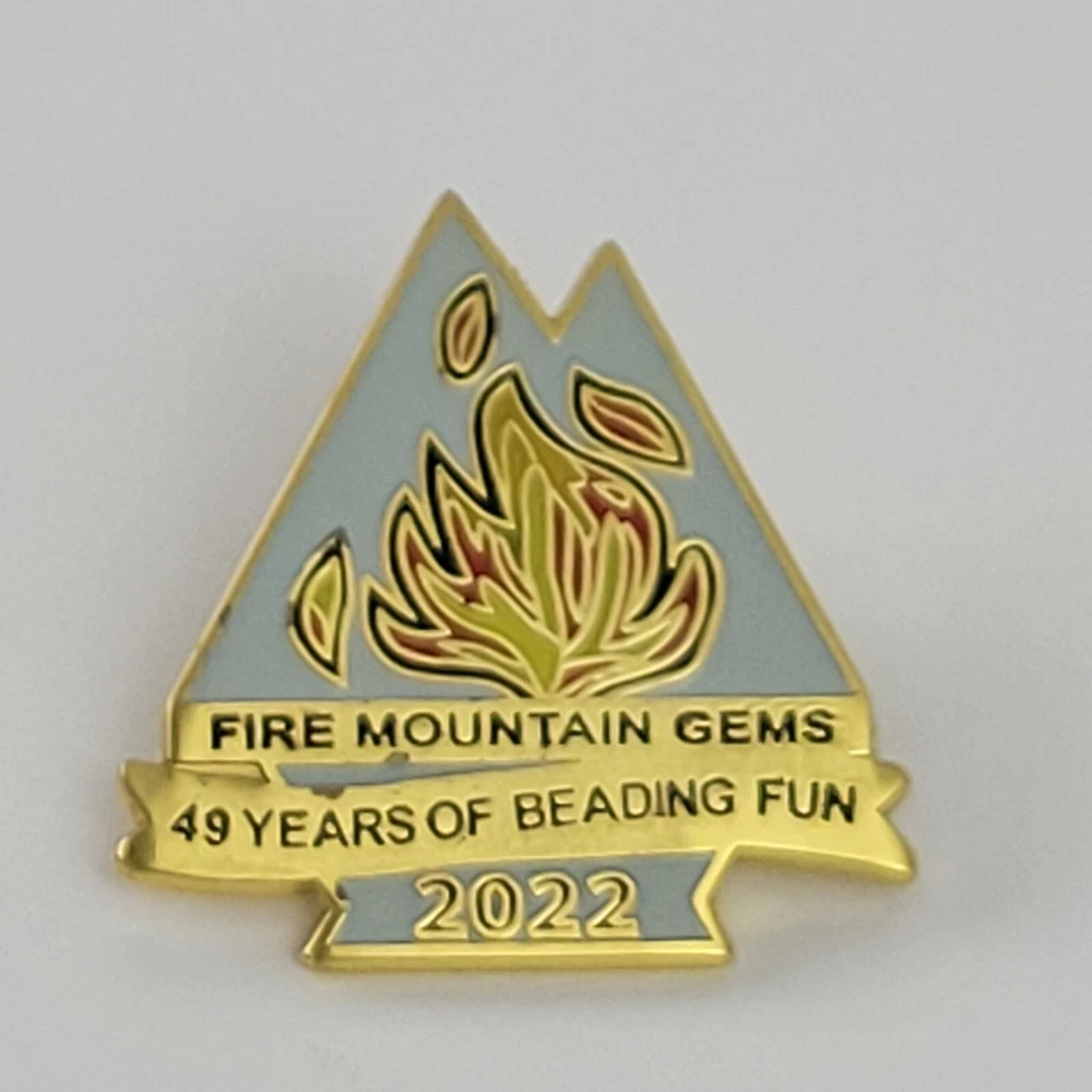 If you are missing the 2022 pin from the Fire Mountain Gems Bead Show, this is the pin for you. It measures 1 1/8" wide and tall.