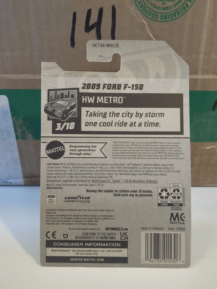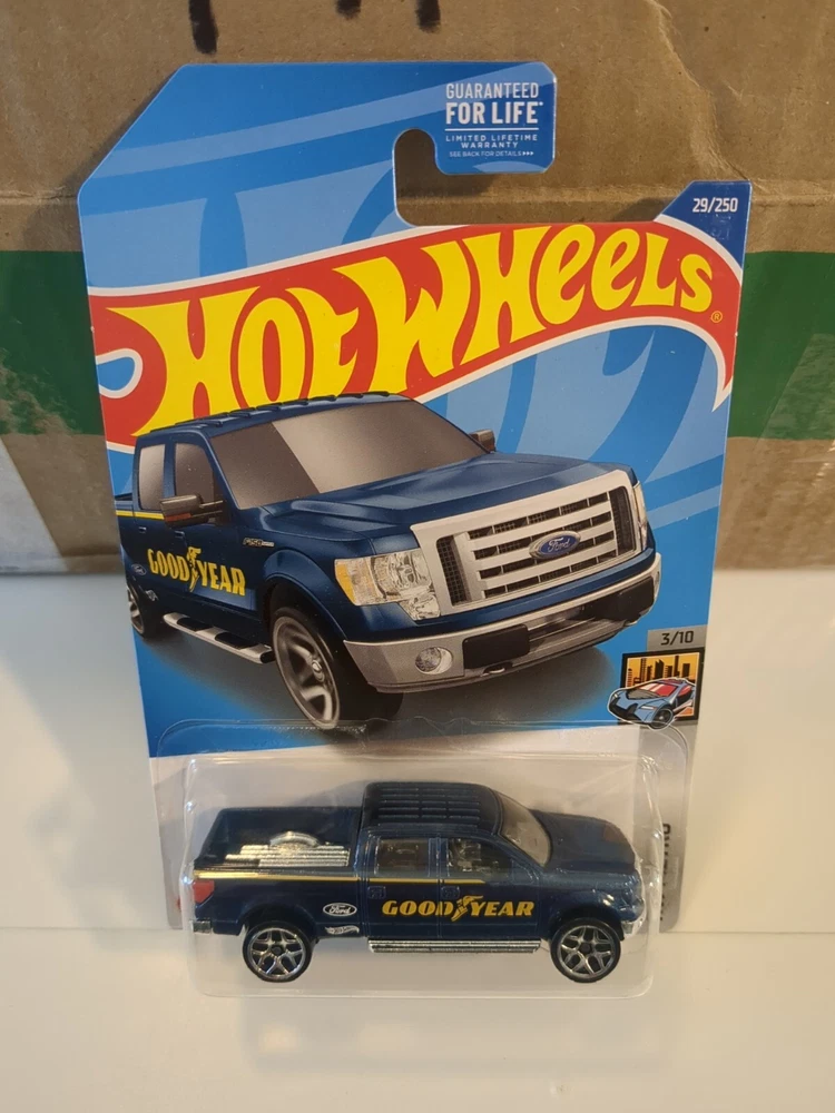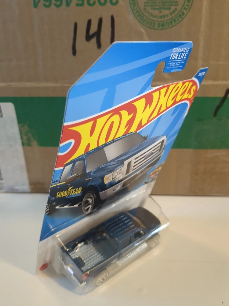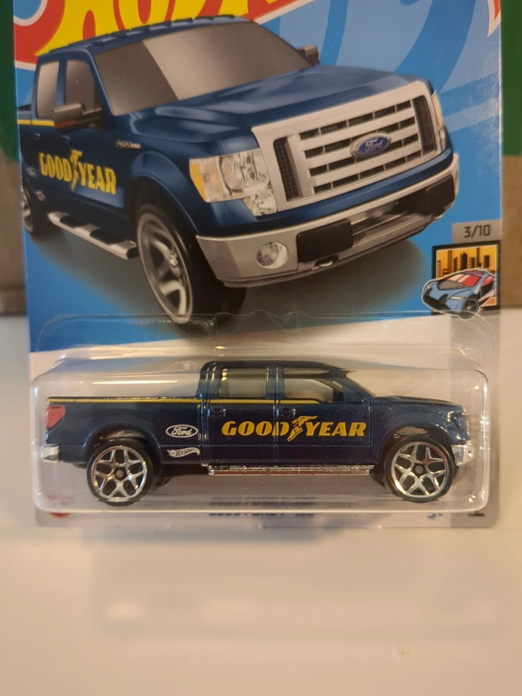 Capture the essence of durability and style with the 2022 Hot Wheels Blue Goodyear 2009 Ford F-150 from the HW Metro series. This 1:50 scale diecast model is a meticulous representation of the iconic pickup truck, celebrated for its robust design and versatility. The striking blue color, paired with authentic advertising specifications, makes it a standout piece for collectors and enthusiasts alike. Unopened and preserved in its original box, this special edition model echoes the spirit of the 2009 Ford F-150, showcasing the brand's commitment to craftsmanship. With its unique features including an intricate interior and detailed exterior, this Hot Wheels vehicle is a must-have for those who appreciate the blend of realism and miniature artistry. See pics for condition