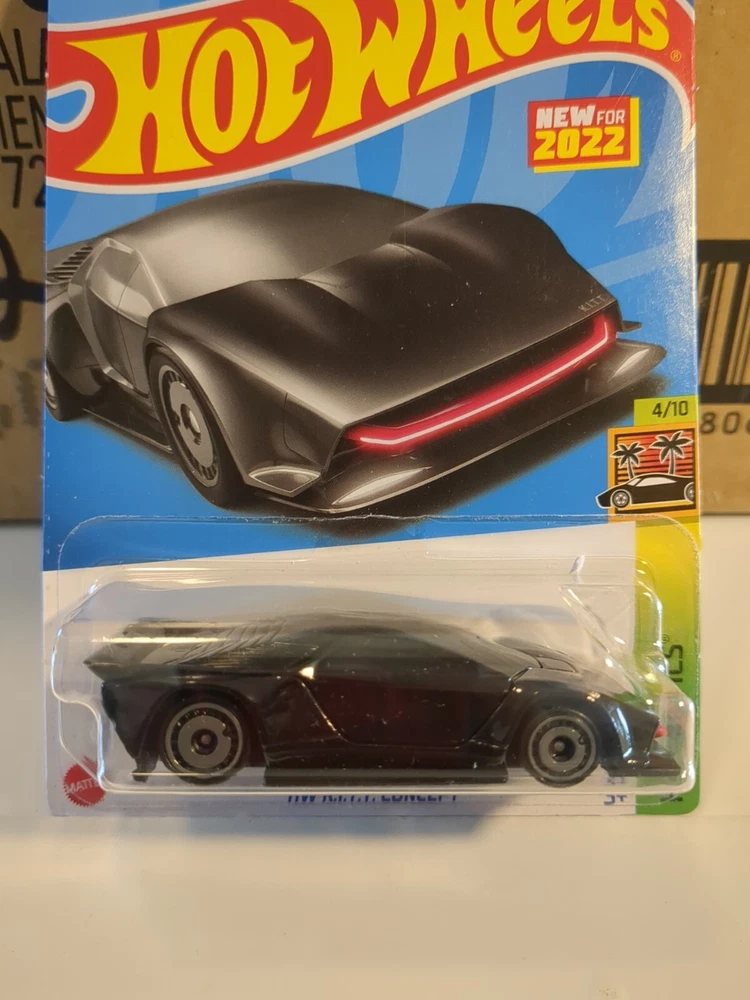 Introducing the 2022 Hot Wheels Knight Rider HW K.I.T.T. KITT Concept HW Exotics 185/250 NIP. This diecast car is a must-have for any Hot Wheels collector or fan of the Knight Rider series. The car is black in color and has a scale of 1:64. It is made from high-quality materials and is recommended for children aged 3 and above. The Hot Wheels Knight Rider HW K.I.T.T. KITT Concept HW Exotics 185/250 NIP is a stunning addition to any collection or toy box. With its intricate design and attention to detail, it is sure to impress. Whether you're a diehard Hot Wheels fan or a fan of the Knight Rider series, this car is a must-have. See pics for condition