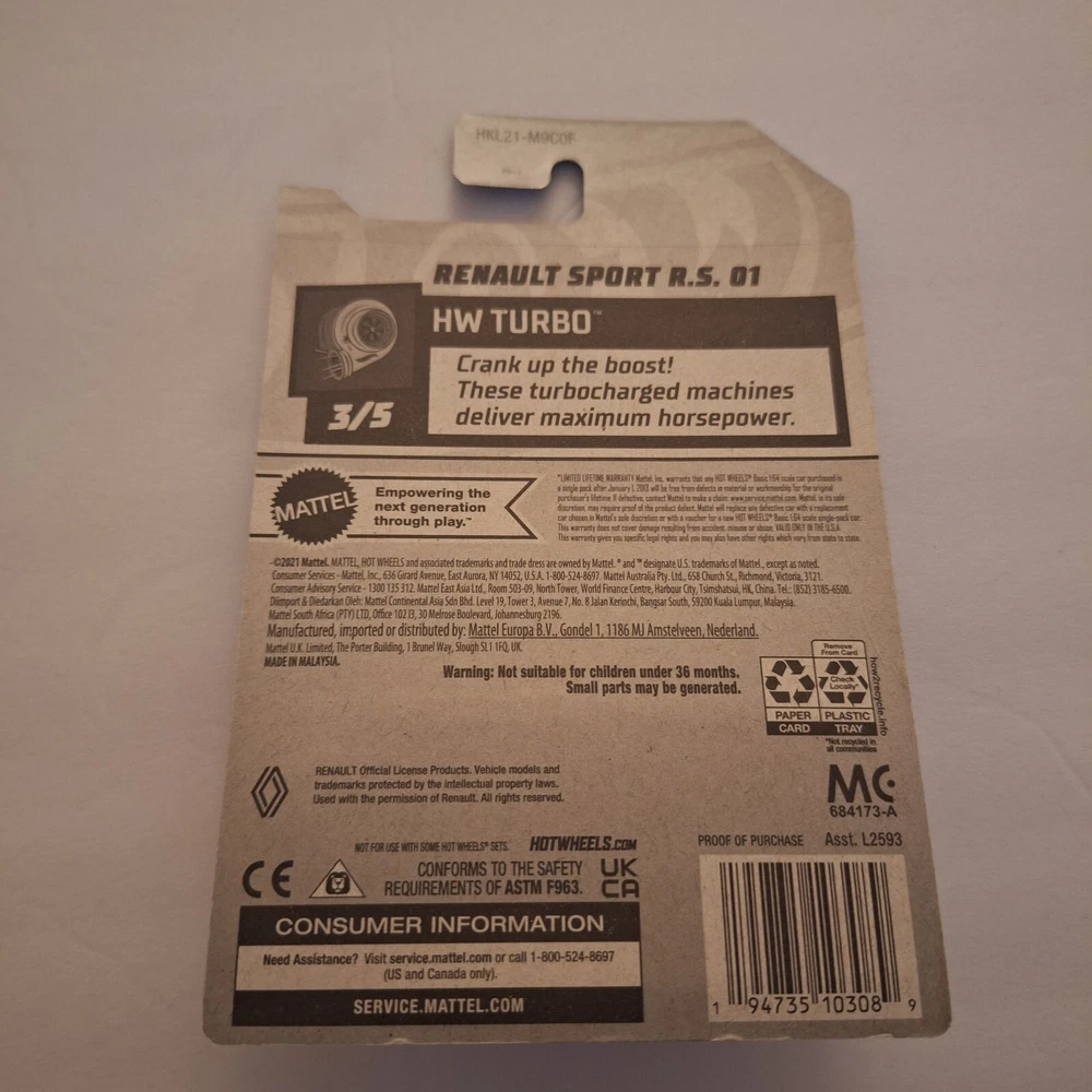 This 2022 Hot Wheels Super Treasure Hunt Renault Sport R.S. 01 is a must-have for any car enthusiast, young or old. With its vibrant red color and intricate diecast material, this 1:64 scale model is sure to catch the eye. The car is part of the Hot Wheels Super Treasure Hunt series and is recommended for children aged 3 and up. The Renault Sport R.S. 01 is a gorgeous addition to any collection and is perfect for play or display. It was manufactured in Malaysia in 2021 and is suitable for both boys and girls. This car is a great gift for anyone who loves cars or for collectors who want to add a rare and unique piece to their collection.