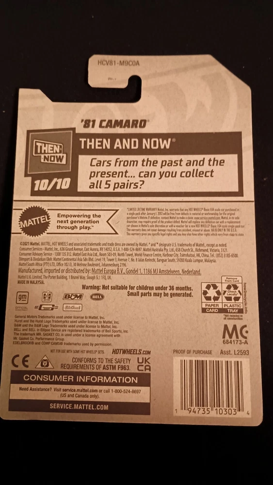 Get your hands on this amazing 2022 Hot Wheels THEN AND NOW diecast car set featuring a 1981 Chevrolet Camaro. The set includes a 1:64 scale model of the iconic car, perfect for collectors and car enthusiasts alike. The green color and intricate details make this model a must-have for any fan of Chevrolet. The recommended age range for this set is 3+, making it a great gift for boys and girls who love cars. The Hot Wheels brand is known for its high-quality diecast models, and this set is no exception. Don't miss out on the chance to add this stunning Chevrolet Camaro to your collection.