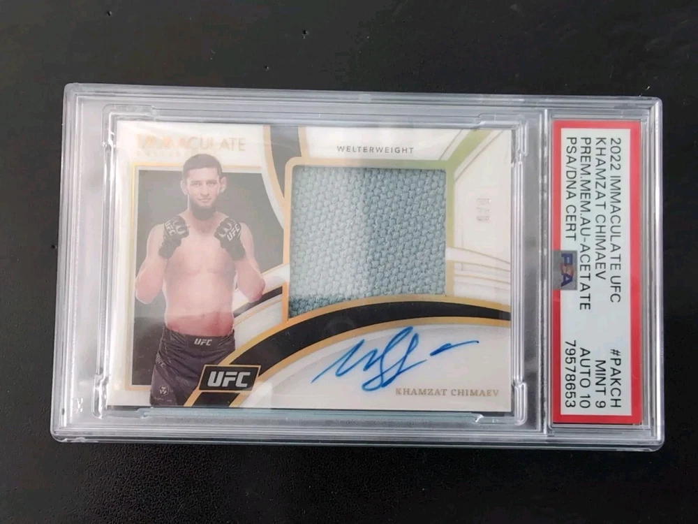 2022 Immaculate UFC Khamzat Chimaev Premium Acetate First Year Auto /8 PSA 9 . Condition is Graded. Shipped with USPS Ground Advantage.