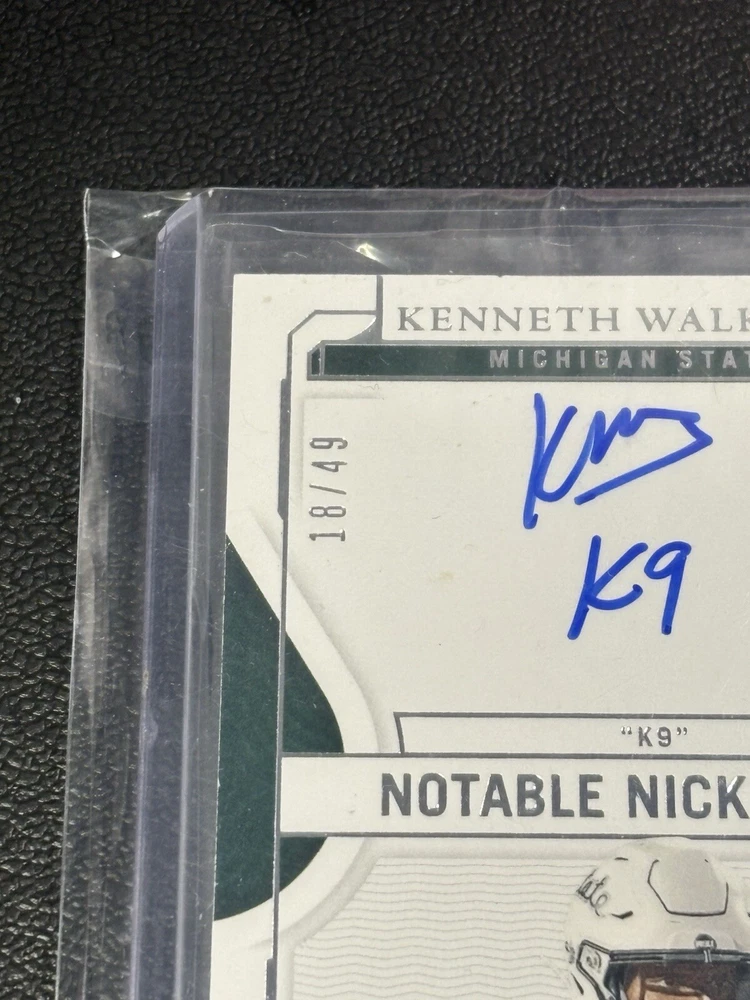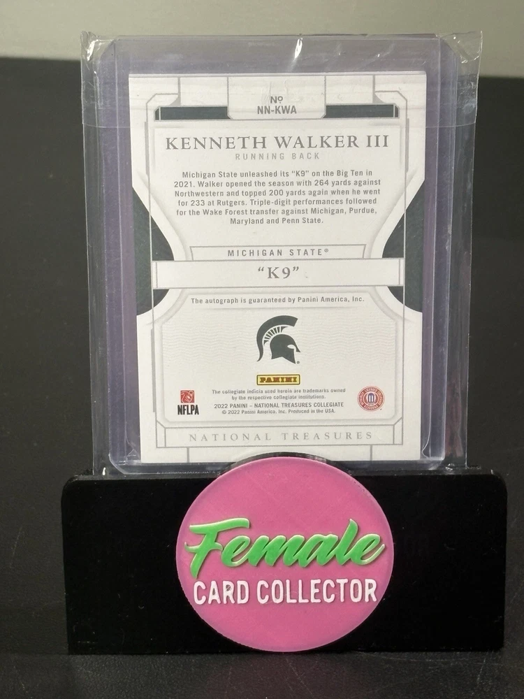 2022 Kenneth Walker National Treasures Collegiate Notable Nicknames "K9" /49 RC Will ship in top loader same Or next day.