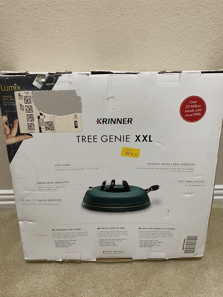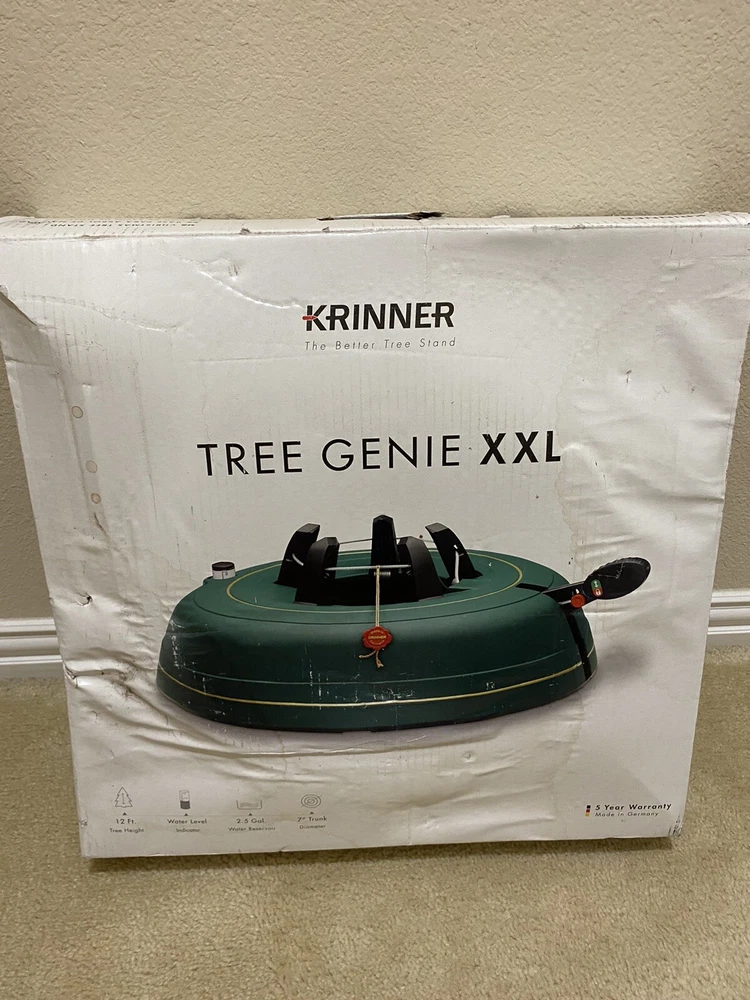 Presenting the 2022 Krinner Tree Genie XXL Deluxe Tree Stand, perfect for displaying live trees up to 12 feet tall. This tree stand features a 5 claw system and a stand included, making it easy to set up and securely hold your tree in place. The XXL size and circular shape make it a versatile option for any Christmas tree, while the green color adds a touch of festive charm. Crafted from durable plastic, this live tree stand is designed to last for years to come. With a height of 4.3 inches and a width of 20 inches, it can accommodate trees of varying sizes. This product is perfect for those who want to display their trees in a stylish and secure manner.