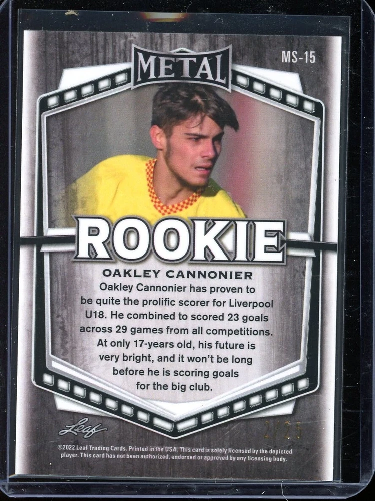 2022 Leaf Metal Soccer Purple Prismatic Oakley Cannonier Rc #MS-15 (2/25)