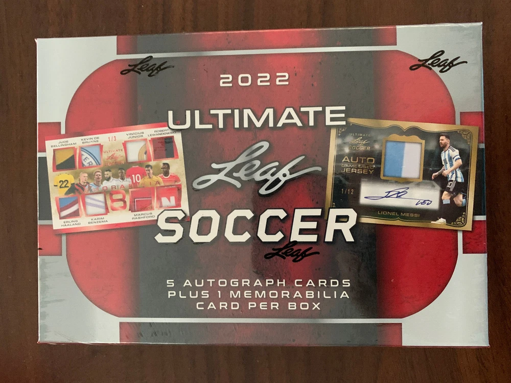 Get ready to add some amazing cards to your collection with this factory sealed 2022 Leaf Ultimate Soccer box. This box includes five autographed cards and one piece of memorabilia, making it the perfect addition to any soccer fan's collection. The cards are from the 2022 season and feature players from around the world. This sports trading card set is manufactured by Leaf and is part of the 2022 Leaf Ultimate series. The box is configured to contain sports trading cards and is perfect for anyone who loves soccer. Whether you're a collector or a fan, this box is sure to impress. Get yours today! Track Page Views With Auctiva's Counter